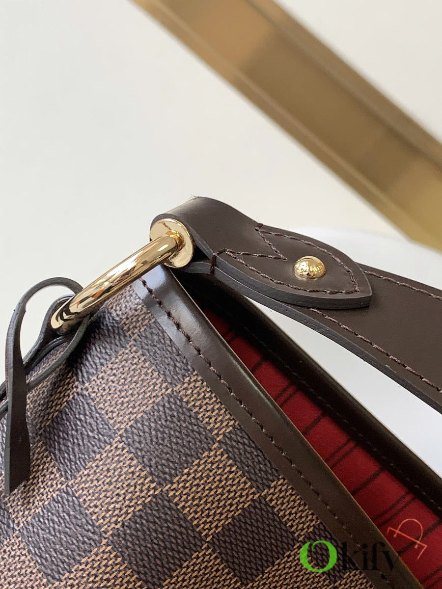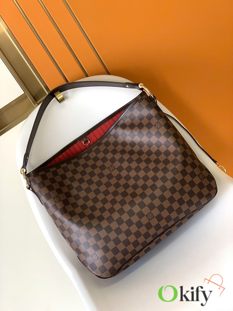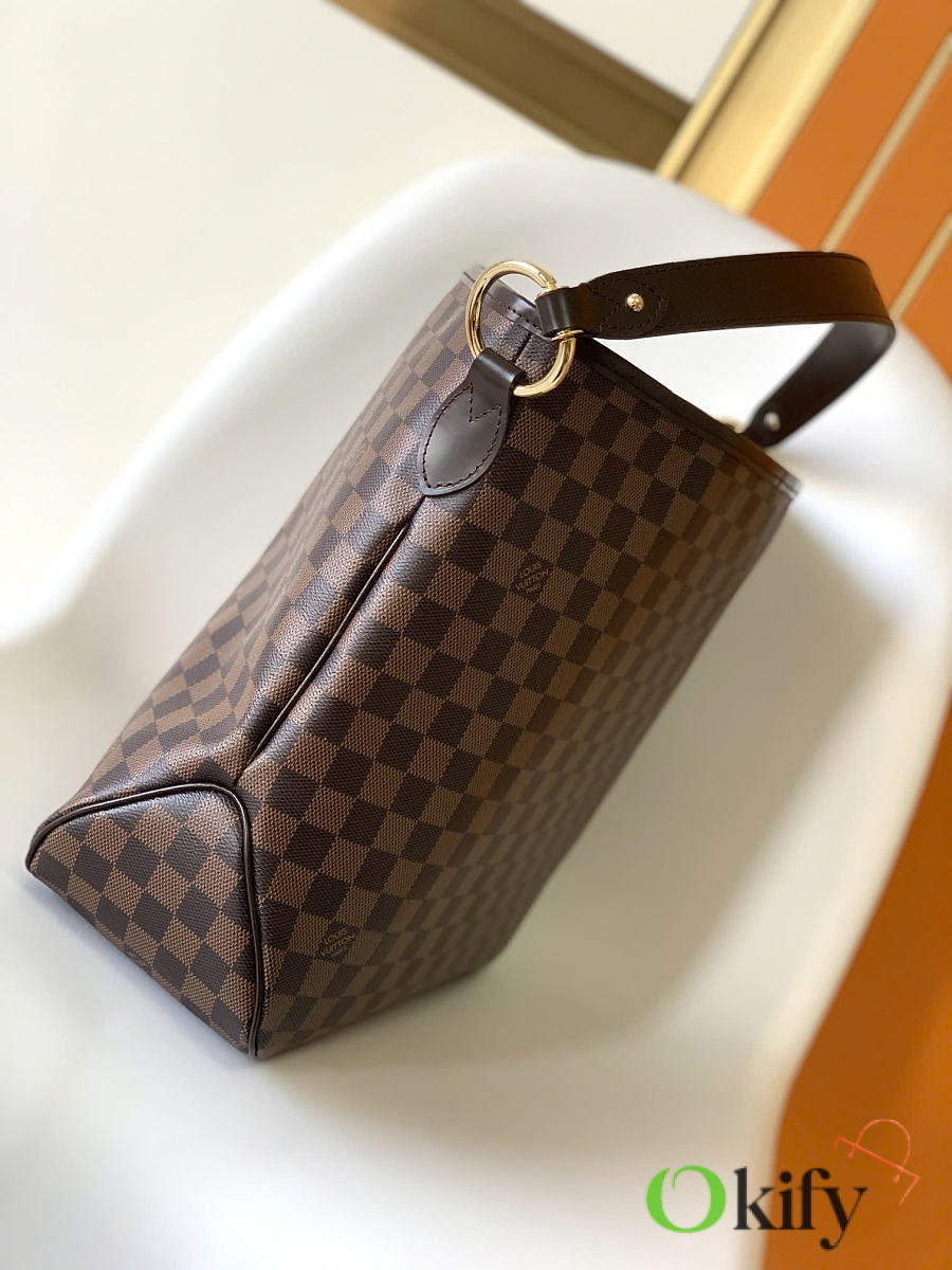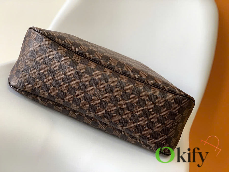 Whether you're spending weekdays in the city or weekends at the beach, you don't need to change your bag. This stylish and chic Damier Azur canvas Calvi bag, full of summer vibes, is suitable for both the office and a beach vacation. This large-capacity tote bag features a wide opening for easy access to your belongings, convenient compartments and pockets to keep everything organized, and a vibrant pomegranate red lining adds a splash of color, creating a sunny summer mood.