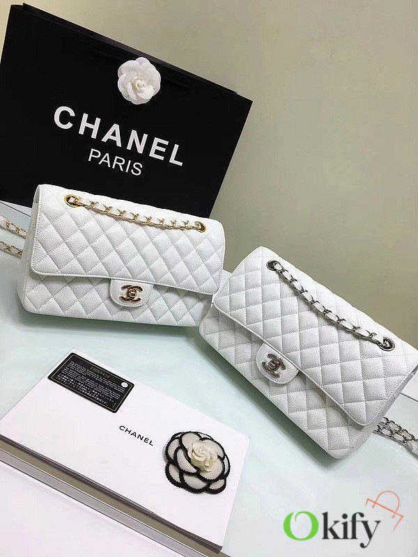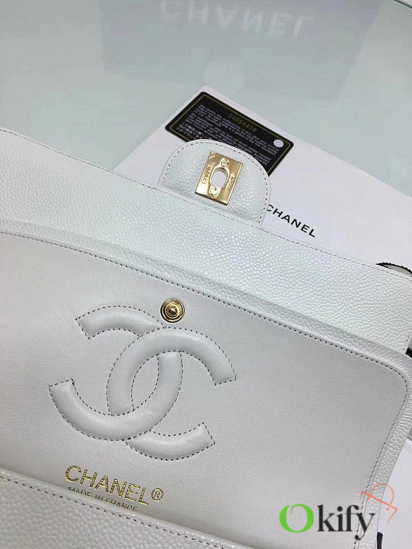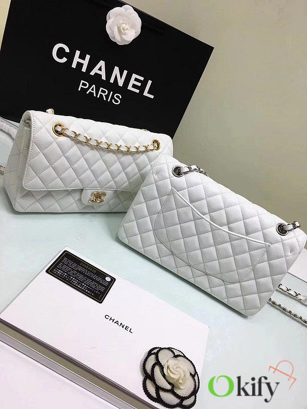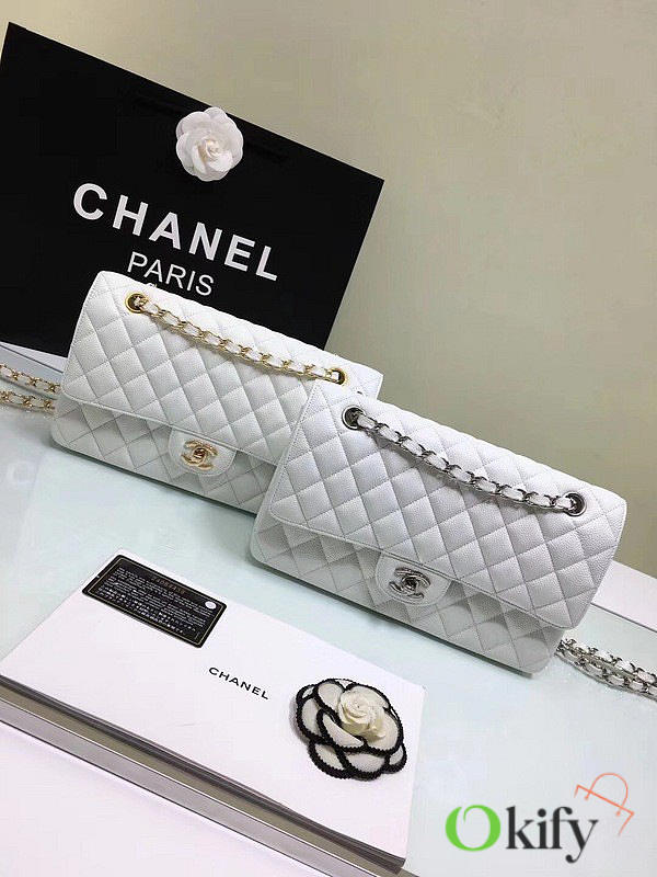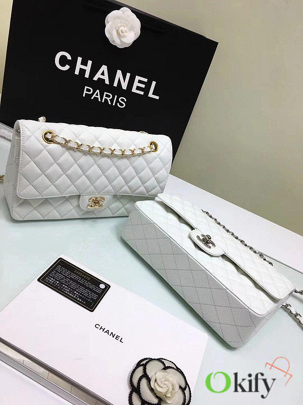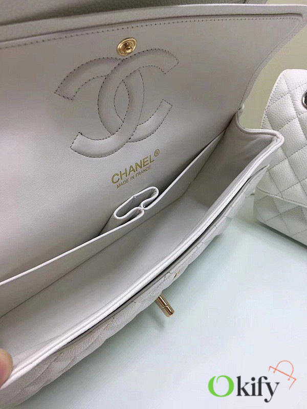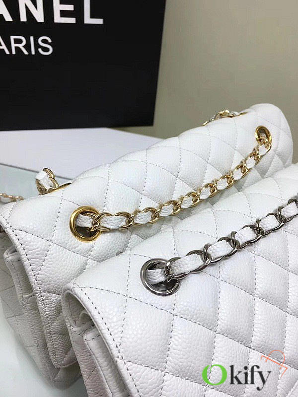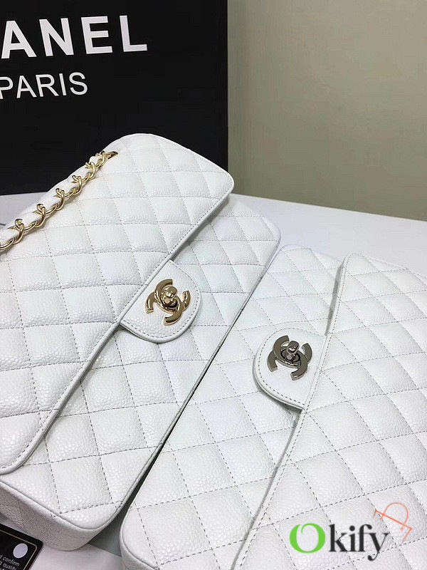 Okify CC Flap Bag In White Caviar 25cm
