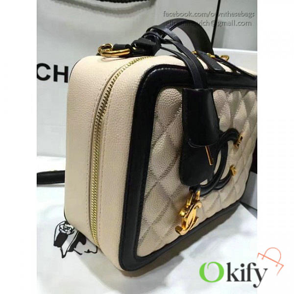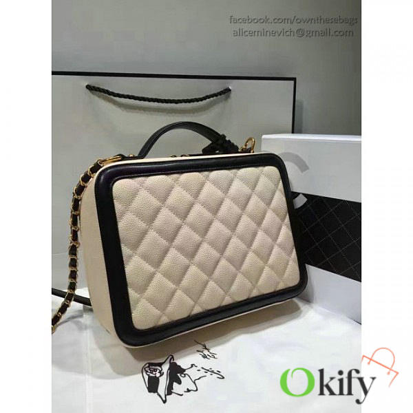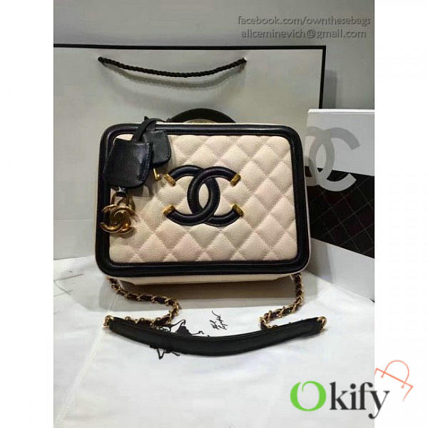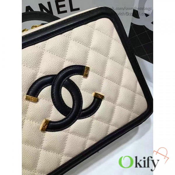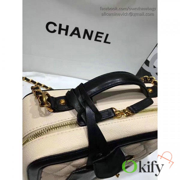 Grained Calfskin / Caviar leather - Gold Metal - Interwoven Chain Strap For Shoulder Carry - Two Large Compartments - One Zip Pocket In The Center Size: W25 x H18.5 x D9 cm(1" = 2.54cm) It Come with serial numbers, Chanel authenticity card, Chanel dust bag, Chanel care booklet.