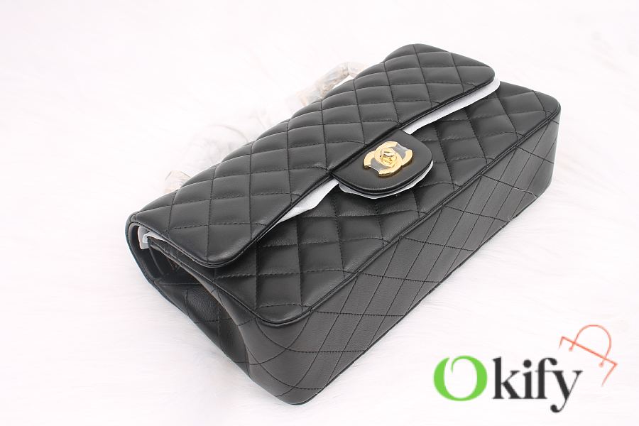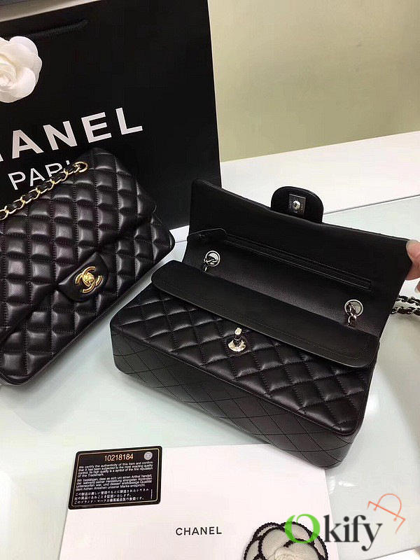 CC Lambskin Leather Flap Bag Gold/silver Metal Black 25cm