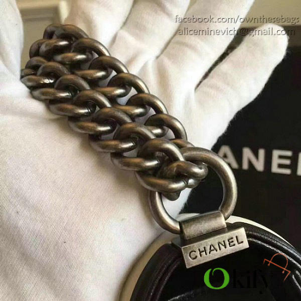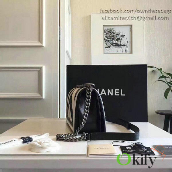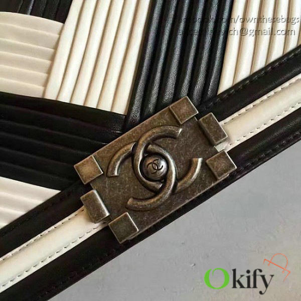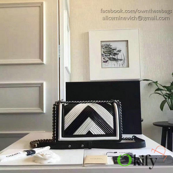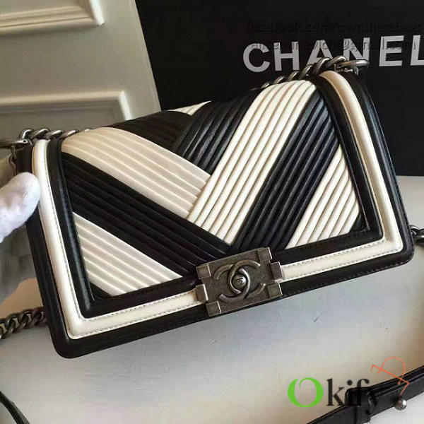 CC Medium Chevron Lambskin Quilted Le Boy 25 White and Black VS04002