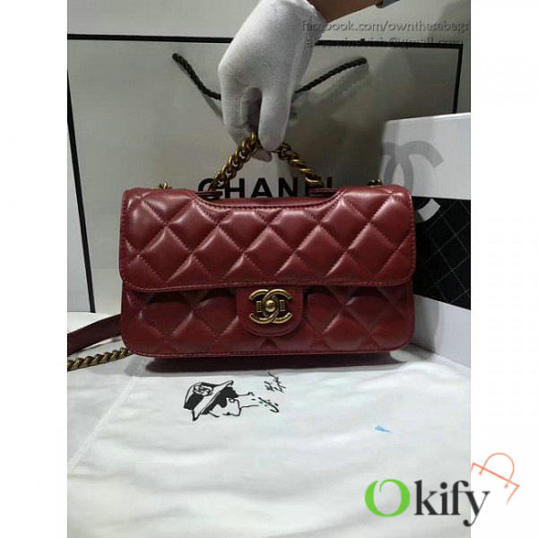 CC Quilted Calfskin Perfect Edge Bag Red Gold A14041 VS09015 26.5cm