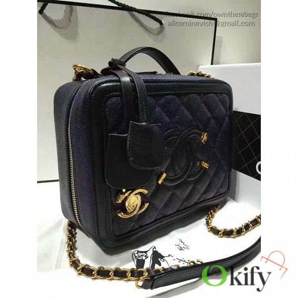 Grained Calfskin / Caviar leather - Gold Metal - Interwoven Chain Strap For Shoulder Carry - Two Large Compartments - One Zip Pocket In The Center Size: W25 x H18.5 x D9 cm(1" = 2.54cm) It Come with serial numbers, Chanel authenticity card, Chanel dust bag, Chanel care booklet.