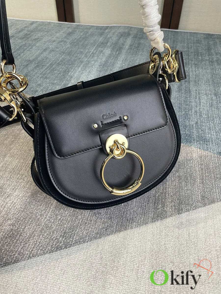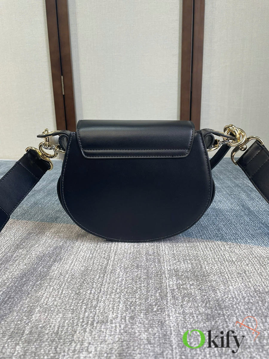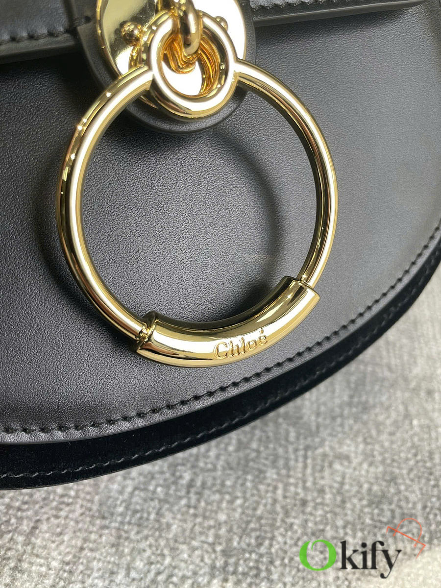 Tess Fall/Winter New Saddle Crossbody Bag. Crafted from elegant glossy calfskin and suede calfskin, this bag presents a sophisticated round silhouette that embodies the brand's essence. A striking front loop displays Chlo's "O" logo. adjustable, detachable long leather strap for crossbody and hand carry. Style number 6027