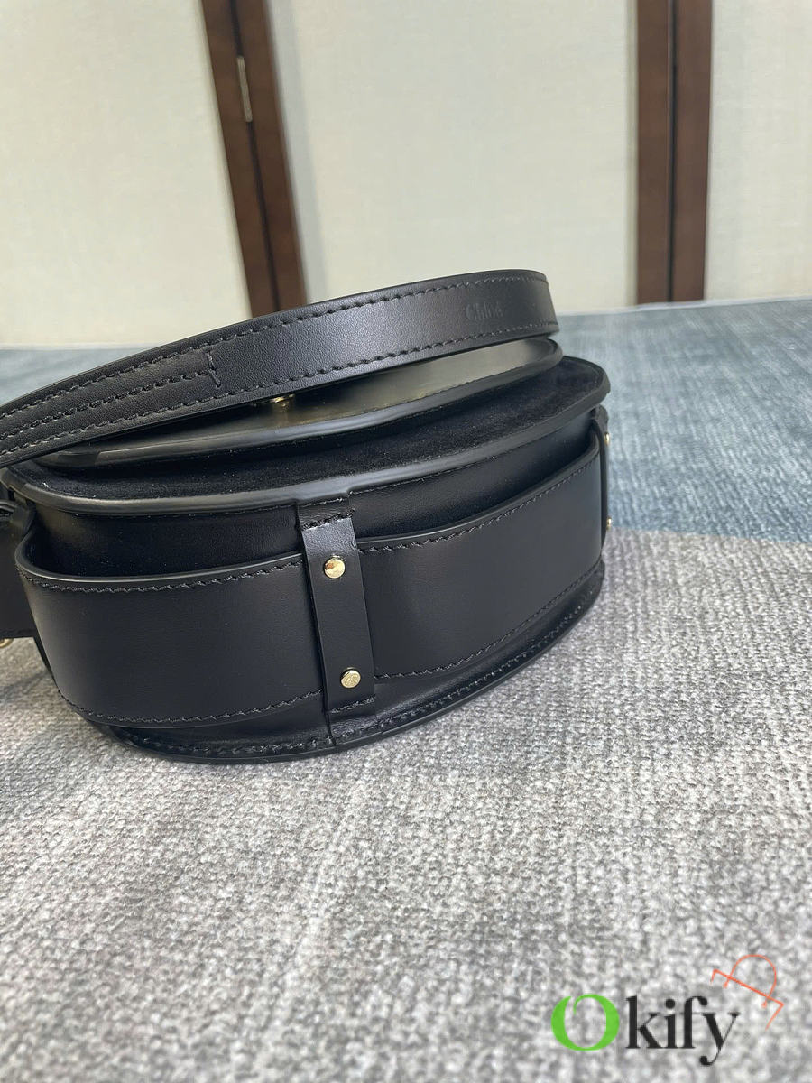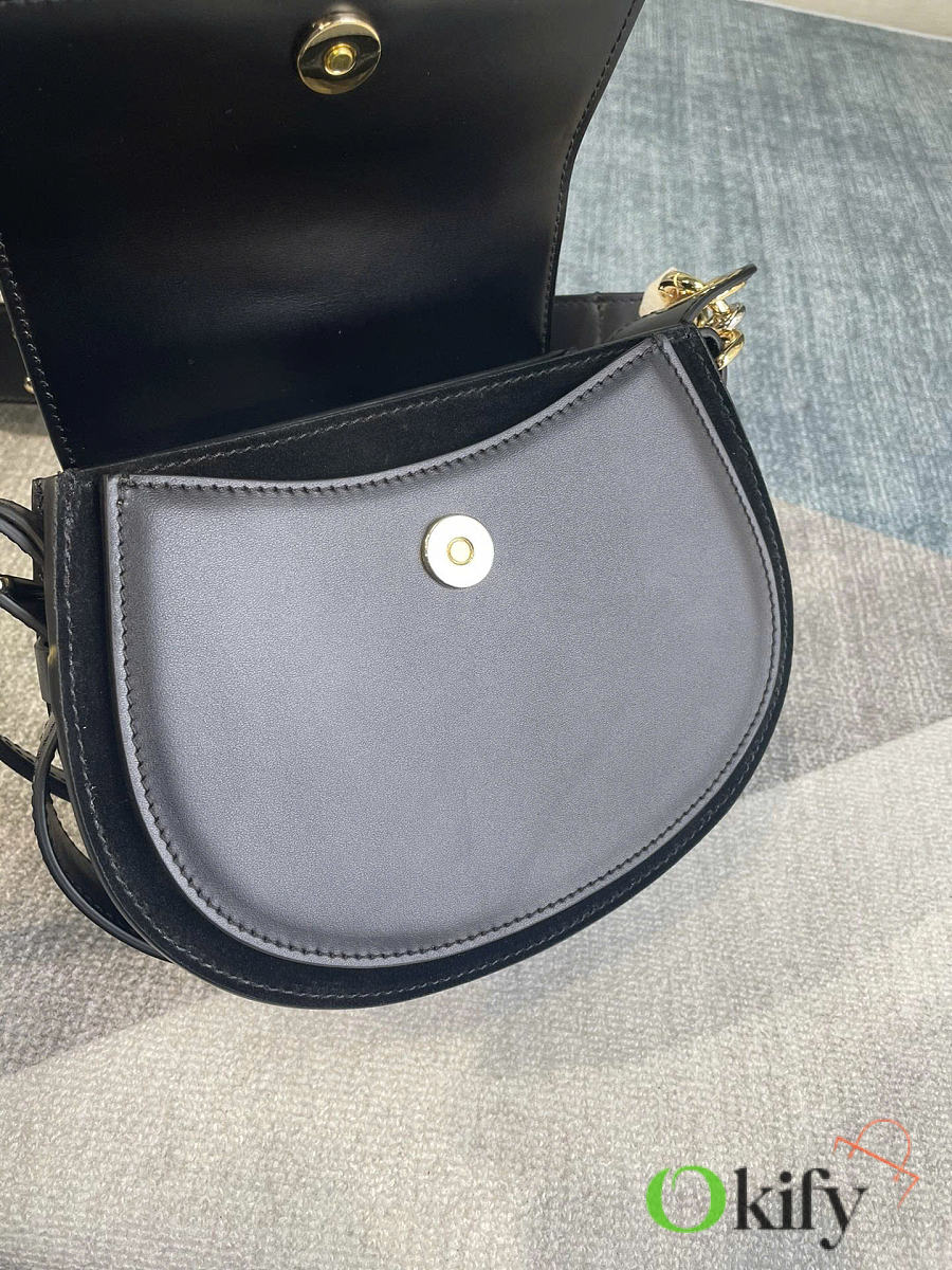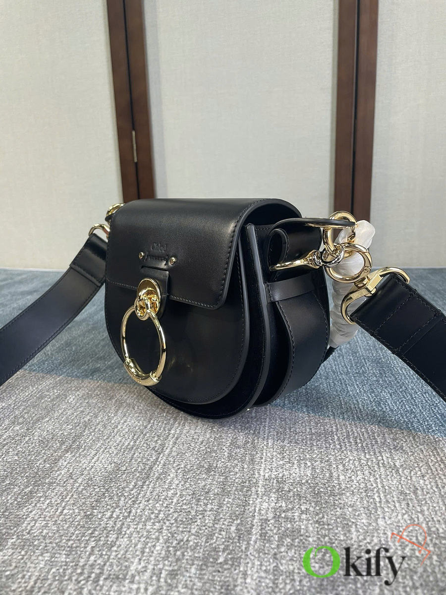 Tess Fall/Winter New Saddle Crossbody Bag. Crafted from elegant glossy calfskin and suede calfskin, this bag presents a sophisticated round silhouette that embodies the brand's essence. A striking front loop displays Chlo's "O" logo. adjustable, detachable long leather strap for crossbody and hand carry. Style number 6027