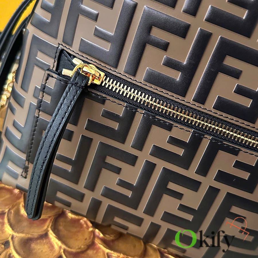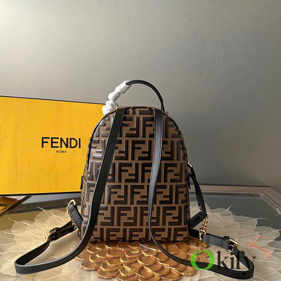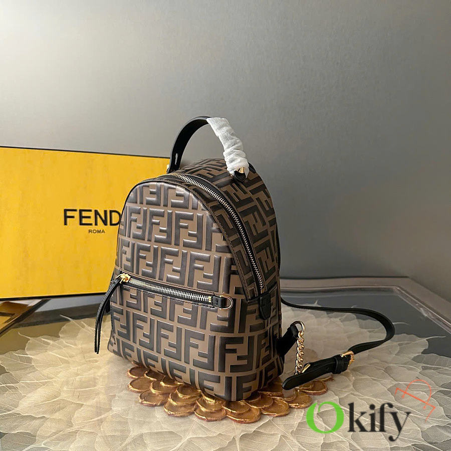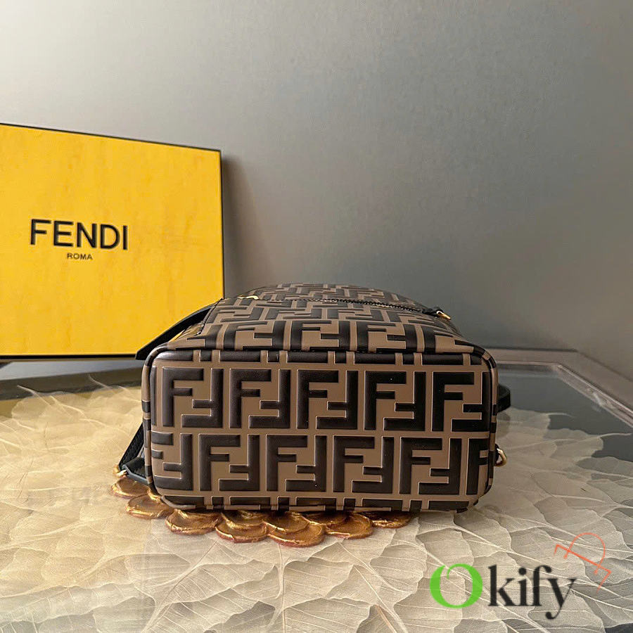Okify Fendi FF Mini Backpack In Brown Lambskin 22x22x10cm