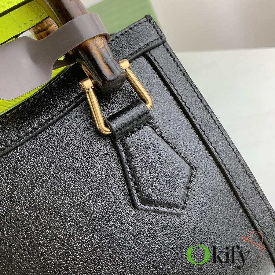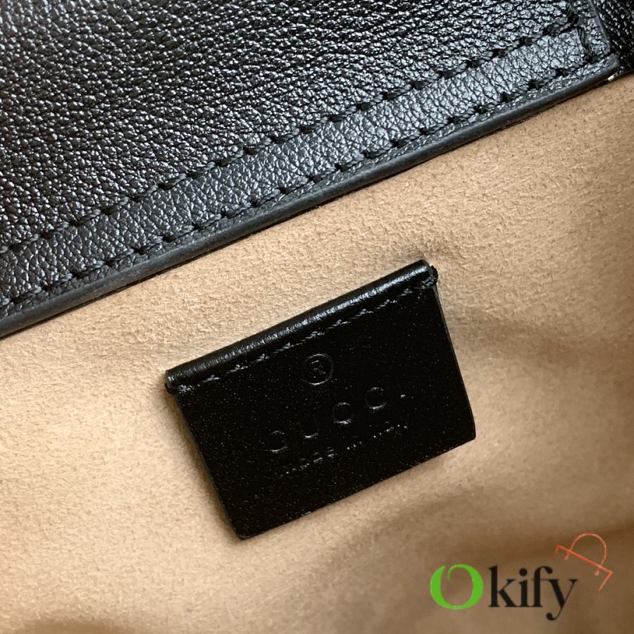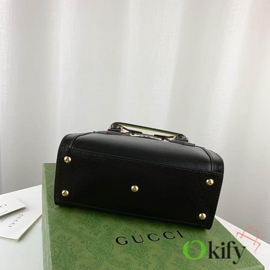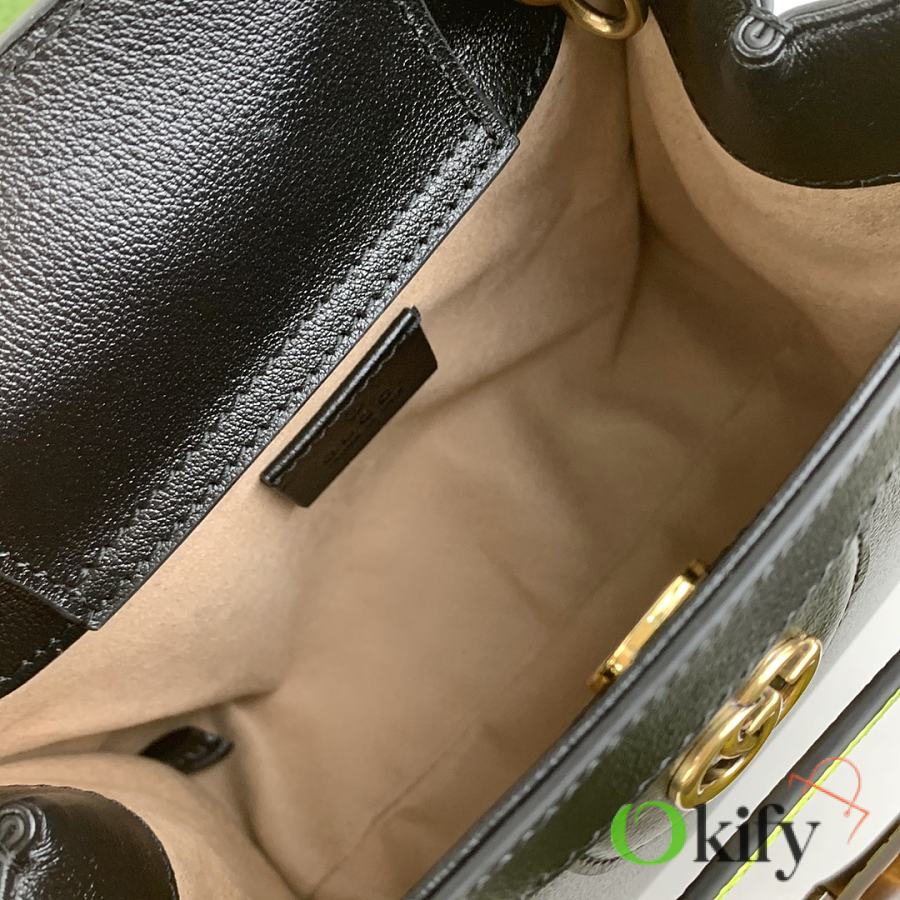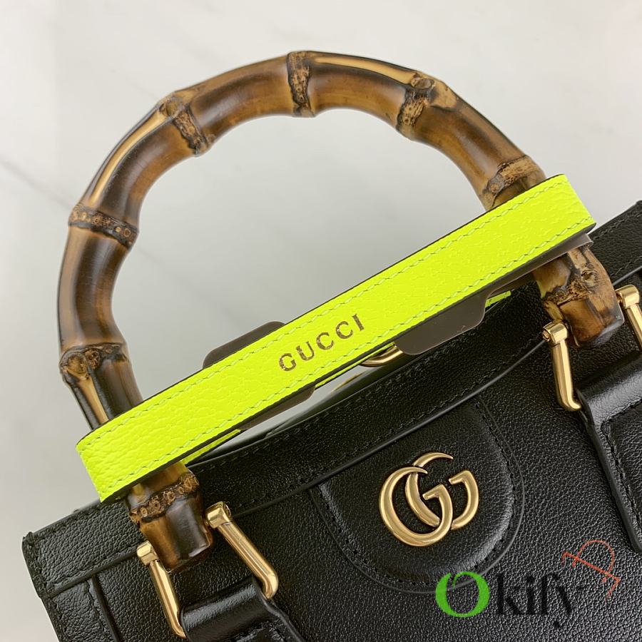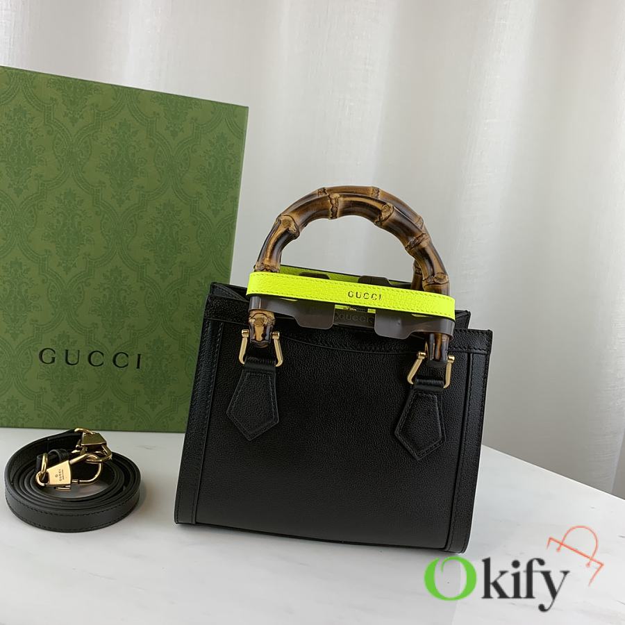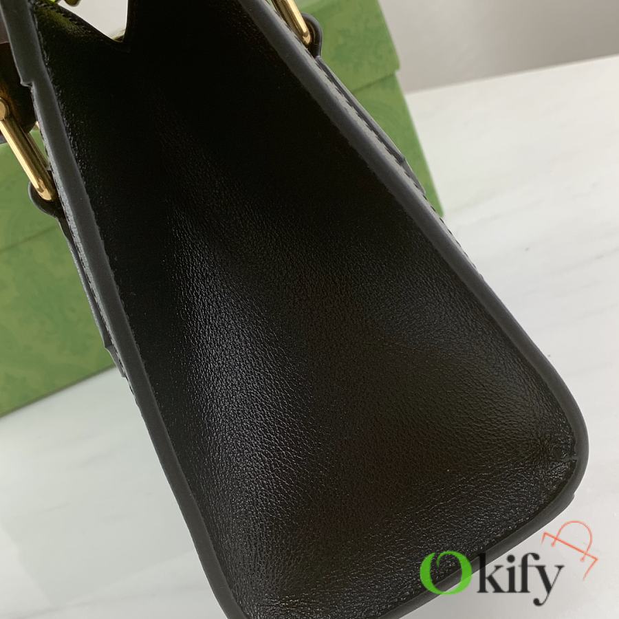 This mini tote bag combines two recognizable brand elements: bamboo handles and double G hardware. The brown leather material complements the two neon buckle straps, highlighting a lively and elegant temperament. Dimensions: 20x16x10