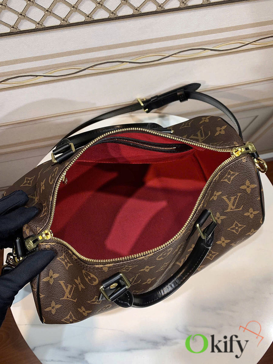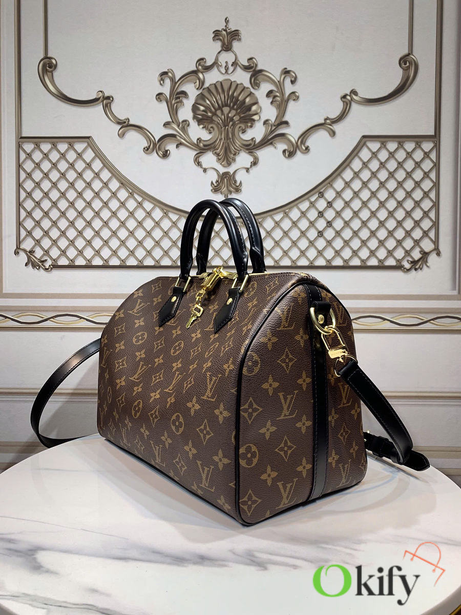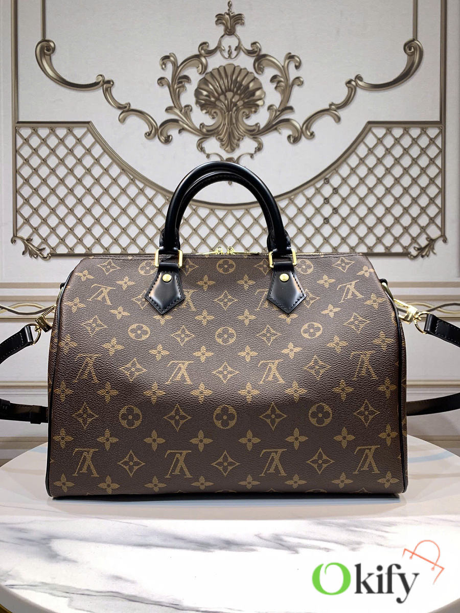 Okify Louis Vuitton Speedy 30 Bag Black And Brown M48284 30x21x7cm