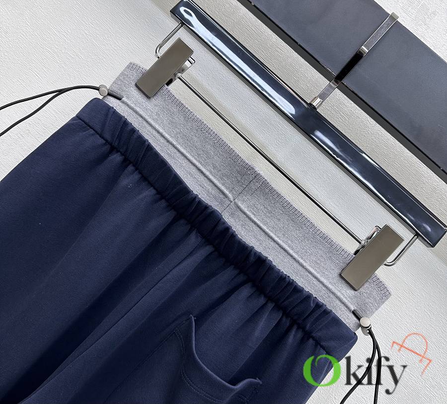 Original custom imported cotton-nylon material, soft, comfortable, and with a smooth drape. The waist features a patchwork design and drawstring elasticity for added style and layering. The waistband is decorated with the brand's signature letter webbing, showcasing the brand's style. 1:1 custom fabric and accessories