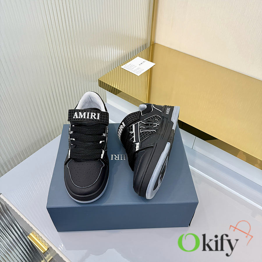 Amiri's new season abandons the rock punk style, using a large amount of unsaturated colors, Morandi tones, which are very pleasing to the eye and to wear. The large tongue of the bread shoe is retained, the length of the shoe body is shortened, the midsole is thickened, and the toe is more rounded. The Amiri brand lettering and MA logo appear on the side of the shoe. Material: Original custom imported top-grain cowhide + mesh Lining: Original custom breathable terry cloth lining Outsole : Foamed TPU material