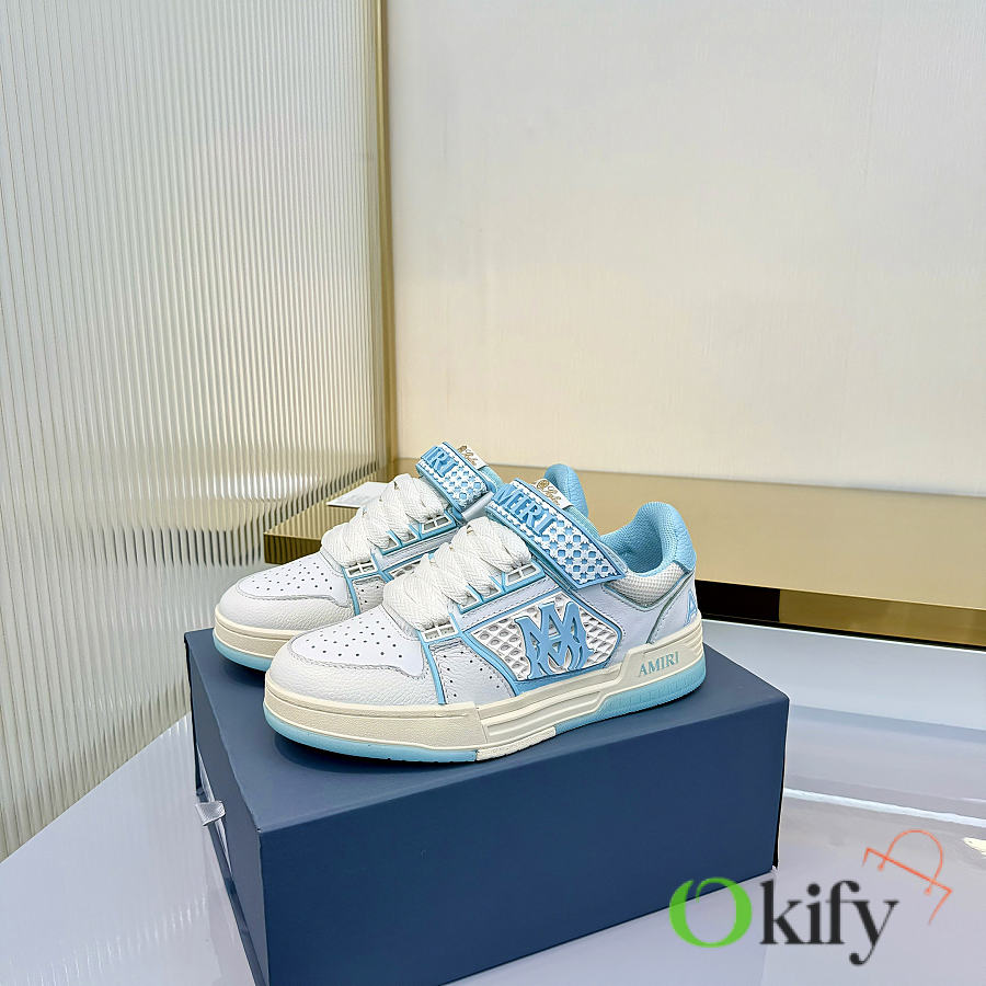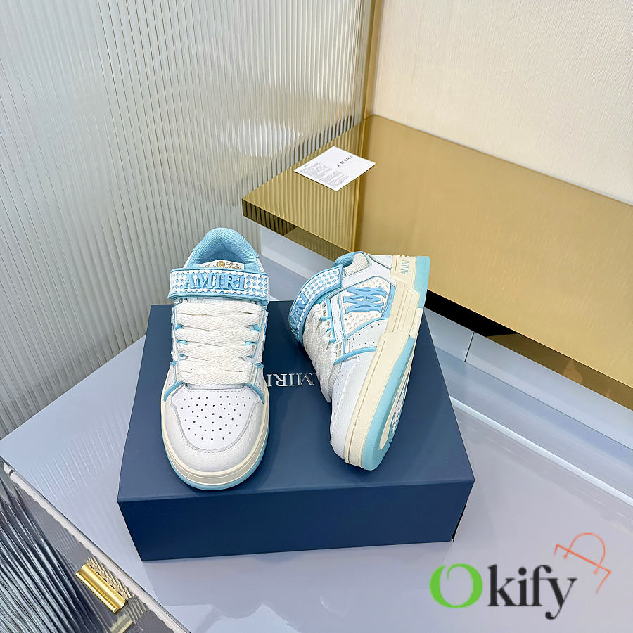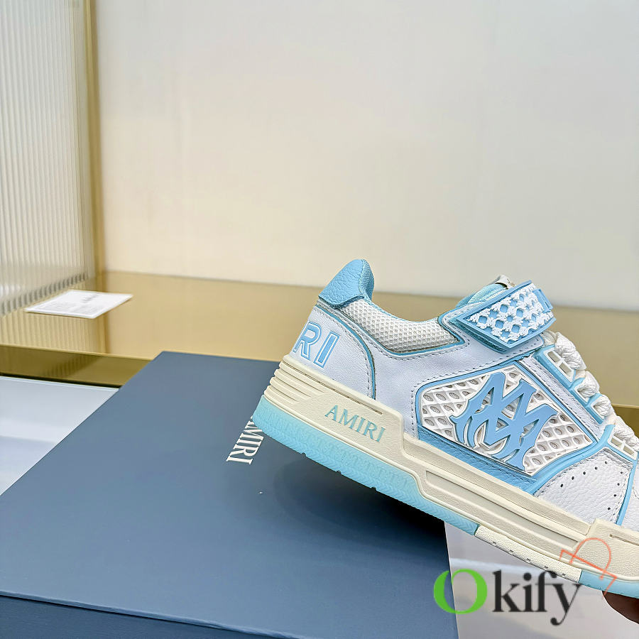 Amiri's new season abandons the rock punk style, using a large amount of unsaturated colors, Morandi tones, which are very pleasing to the eye and to wear. The large tongue of the bread shoe is retained, the length of the shoe body is shortened, the midsole is thickened, and the toe is more rounded. The Amiri brand lettering and MA logo appear on the side of the shoe. Material: Original custom imported top-grain cowhide + mesh Lining: Original custom breathable terry cloth lining Outsole : Foamed TPU material