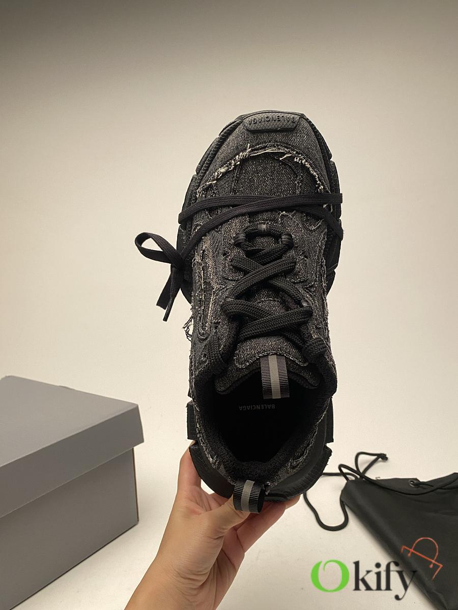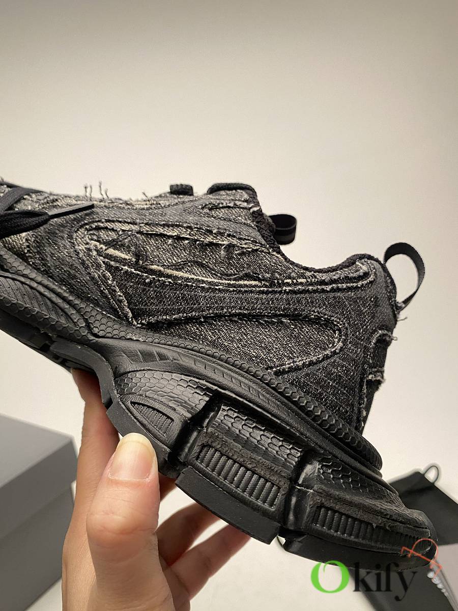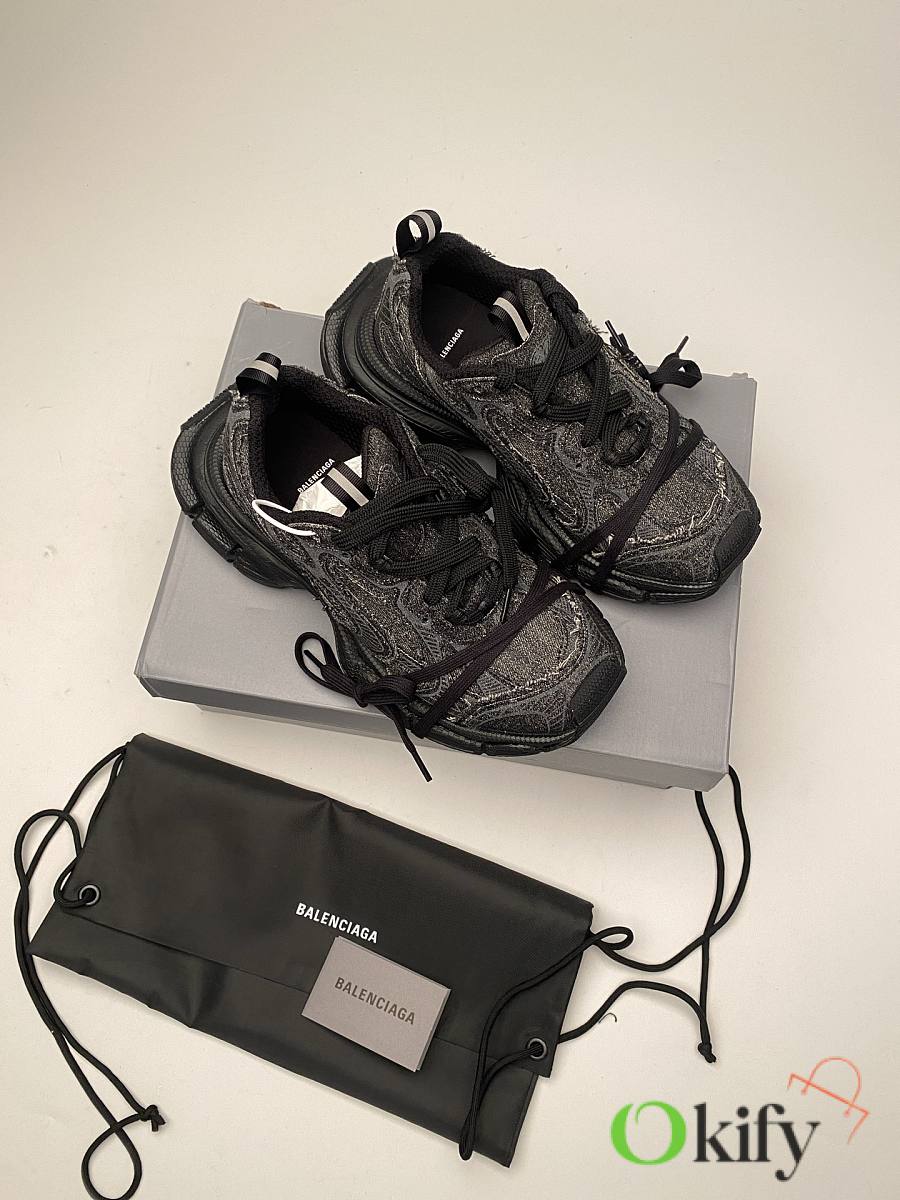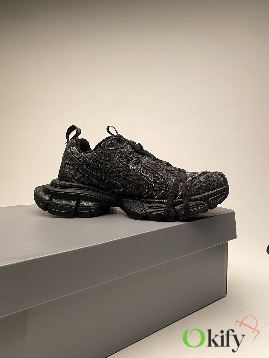 The Balenciaga 3XL Sneaker's overall design draws inspiration from the Balenciaga Track and Balenc~aga Runner silhouettes. Essentially, it removes the Track's outer frame while retaining the Runner's streamlined shape and the Track's flat toe. An additional pair of straps is added to the front of the shoe for added style.