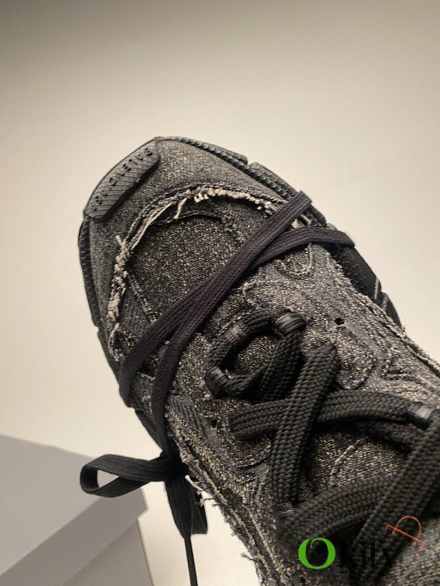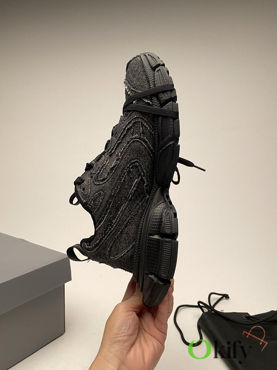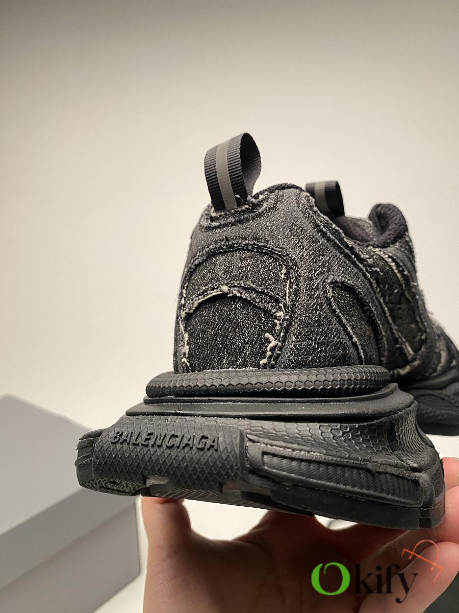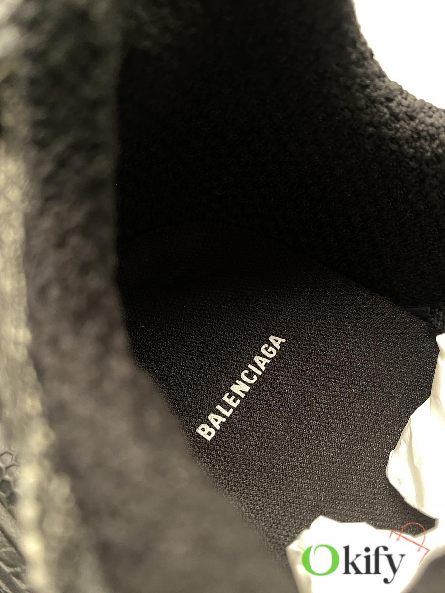 The Balenciaga 3XL Sneaker's overall design draws inspiration from the Balenciaga Track and Balenc~aga Runner silhouettes. Essentially, it removes the Track's outer frame while retaining the Runner's streamlined shape and the Track's flat toe. An additional pair of straps is added to the front of the shoe for added style.