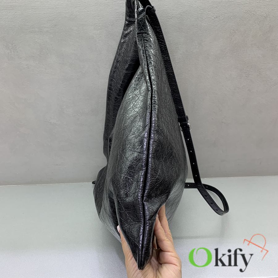 Designed with a dust bag concept, its unconventional and slightly rebellious aesthetic is exactly what makes it stand out and capture attention. This unique design has quickly become a favorite among fashion enthusiasts.