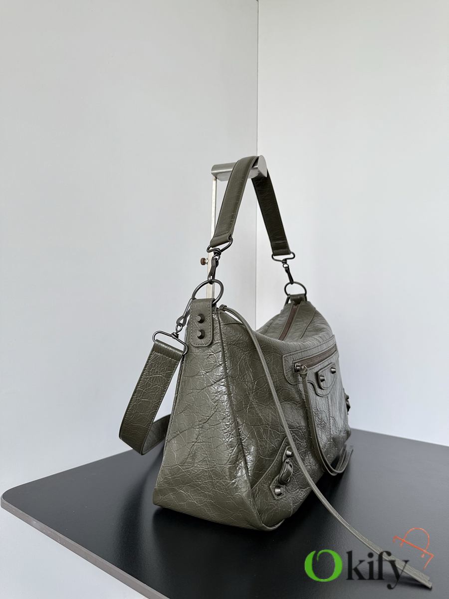 Okify Balenciaga Le City Moto Medium Bag Dark Olive Green 39x26x16cm