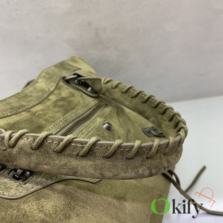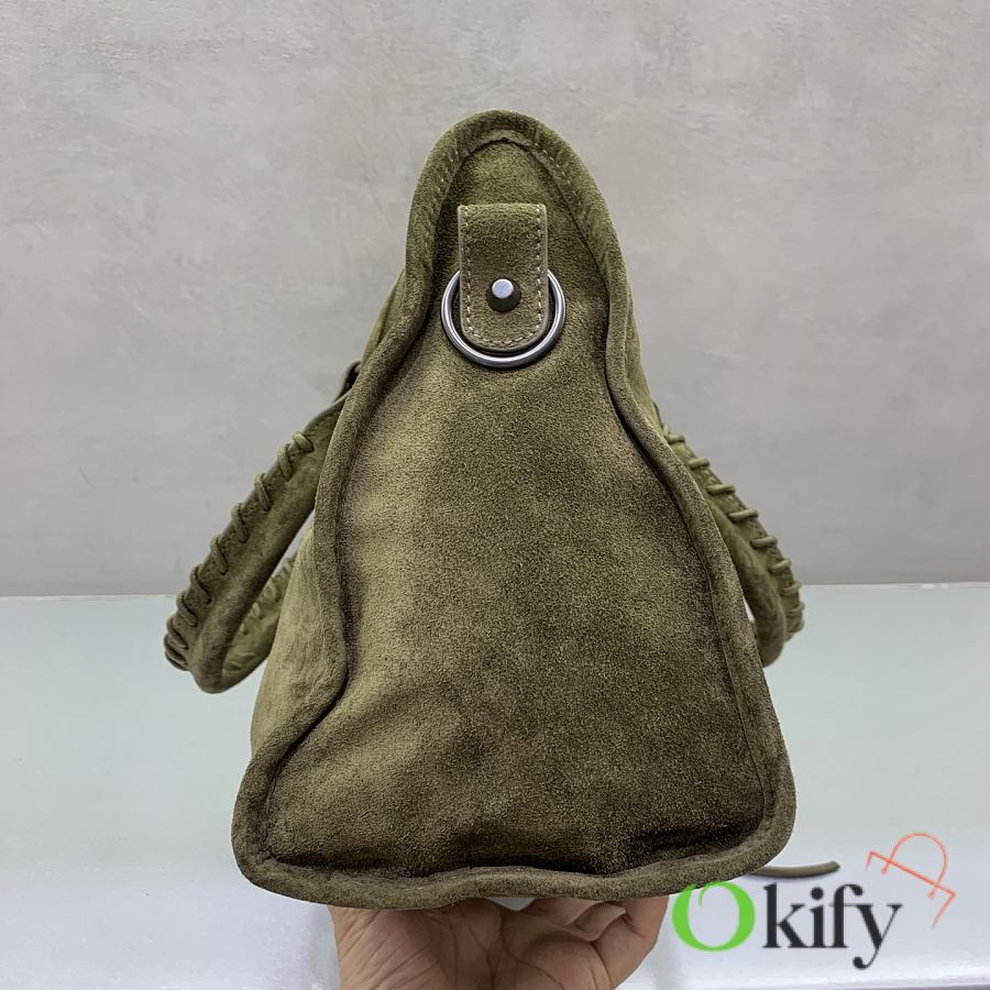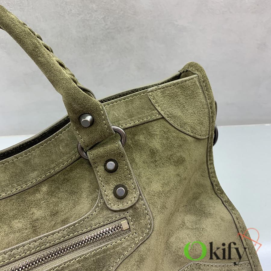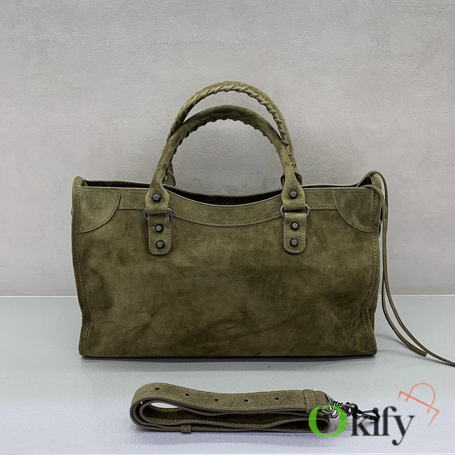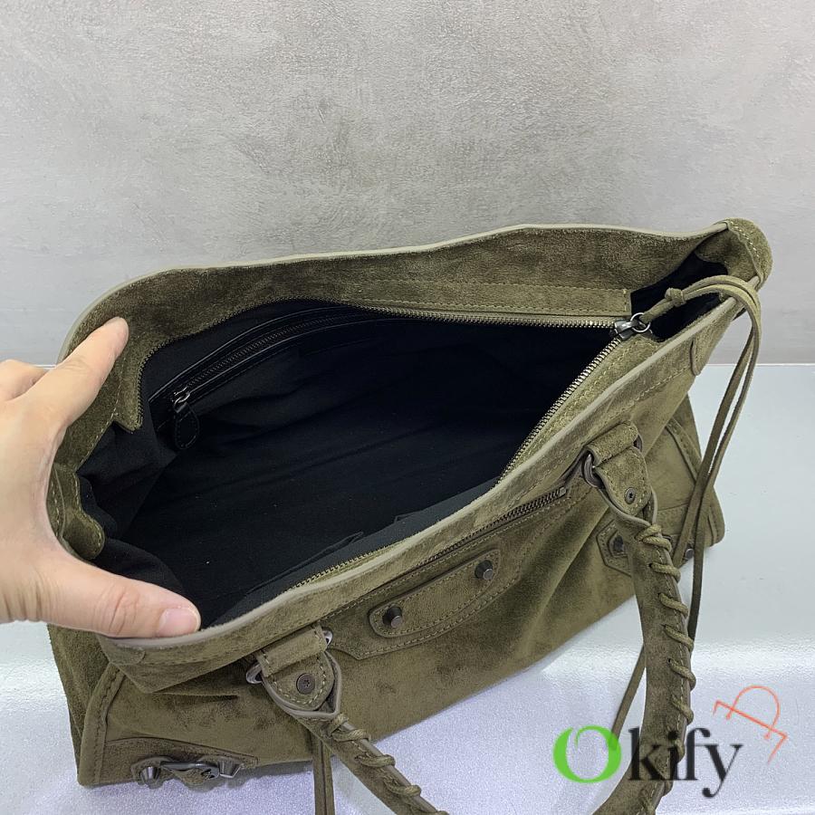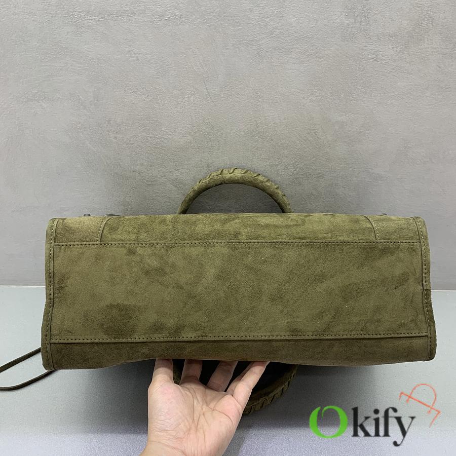 Okify Balenciaga Medium Le City Bag In Dark Green Suede 38x24x15cm