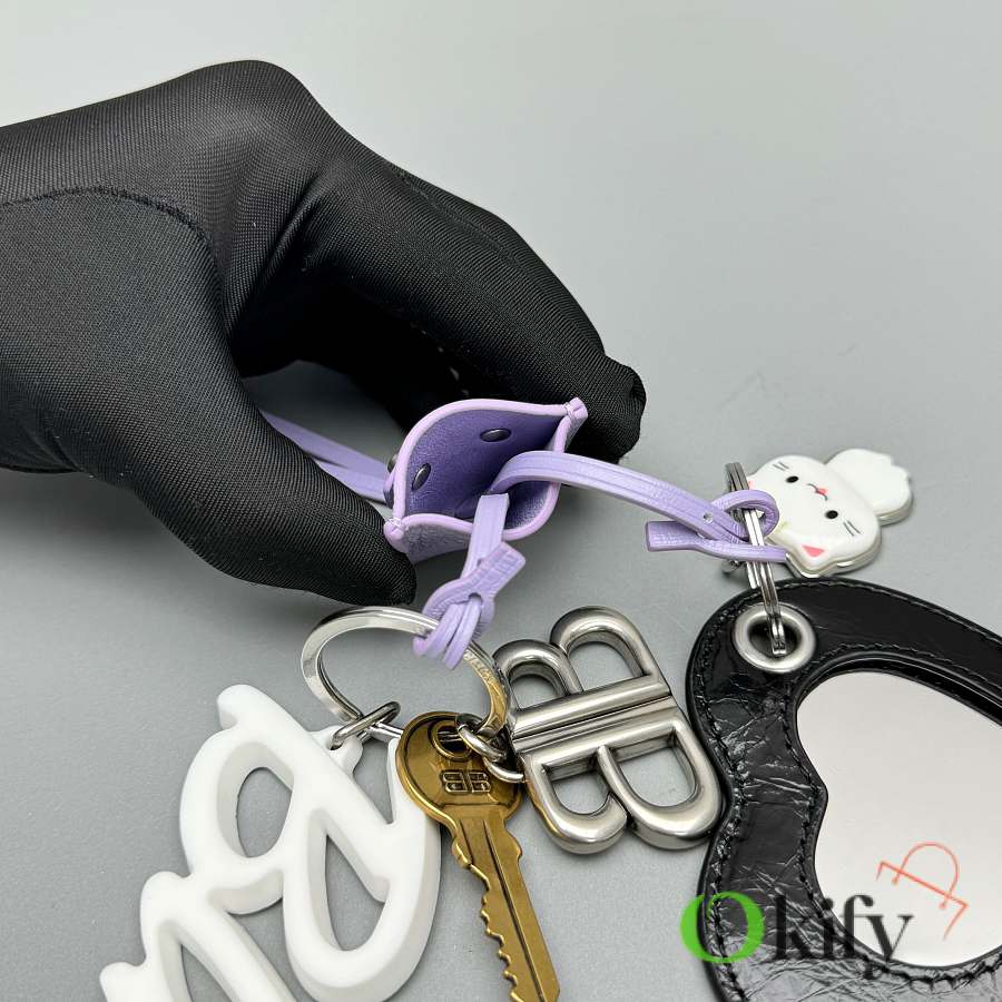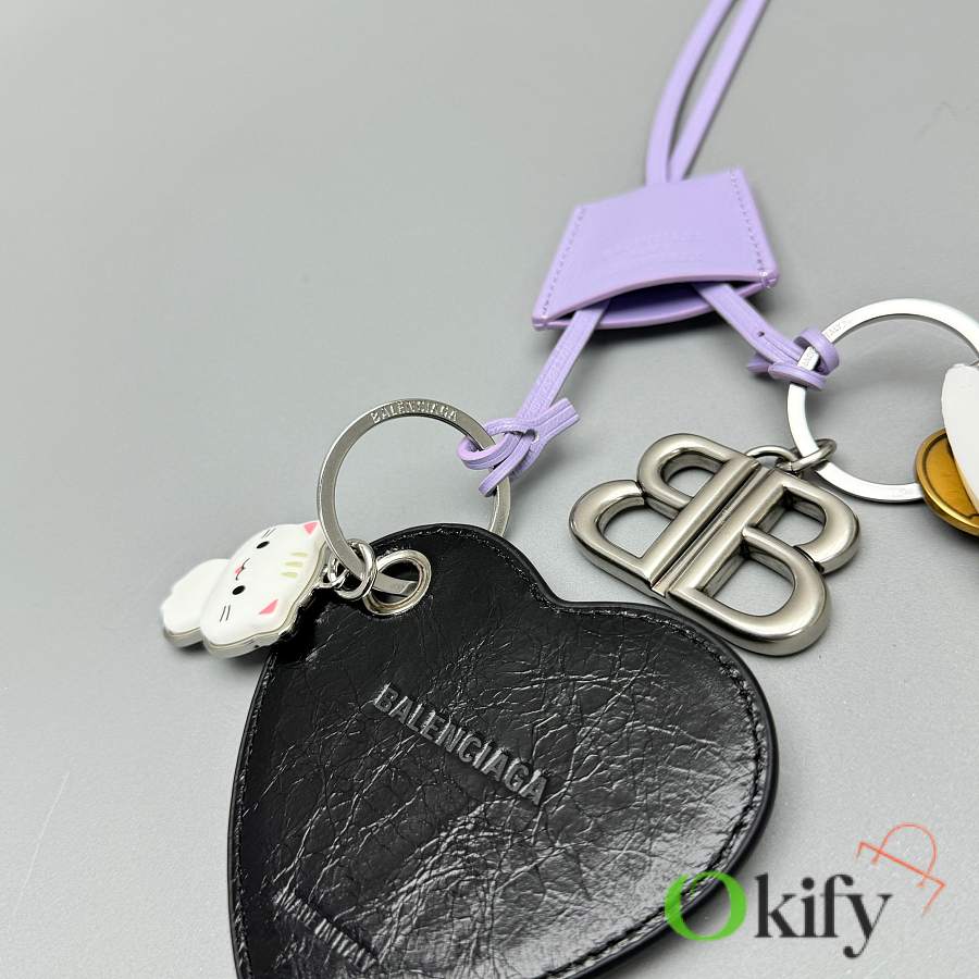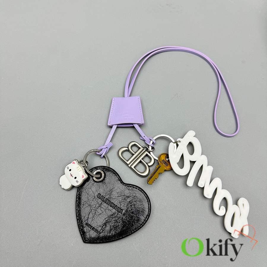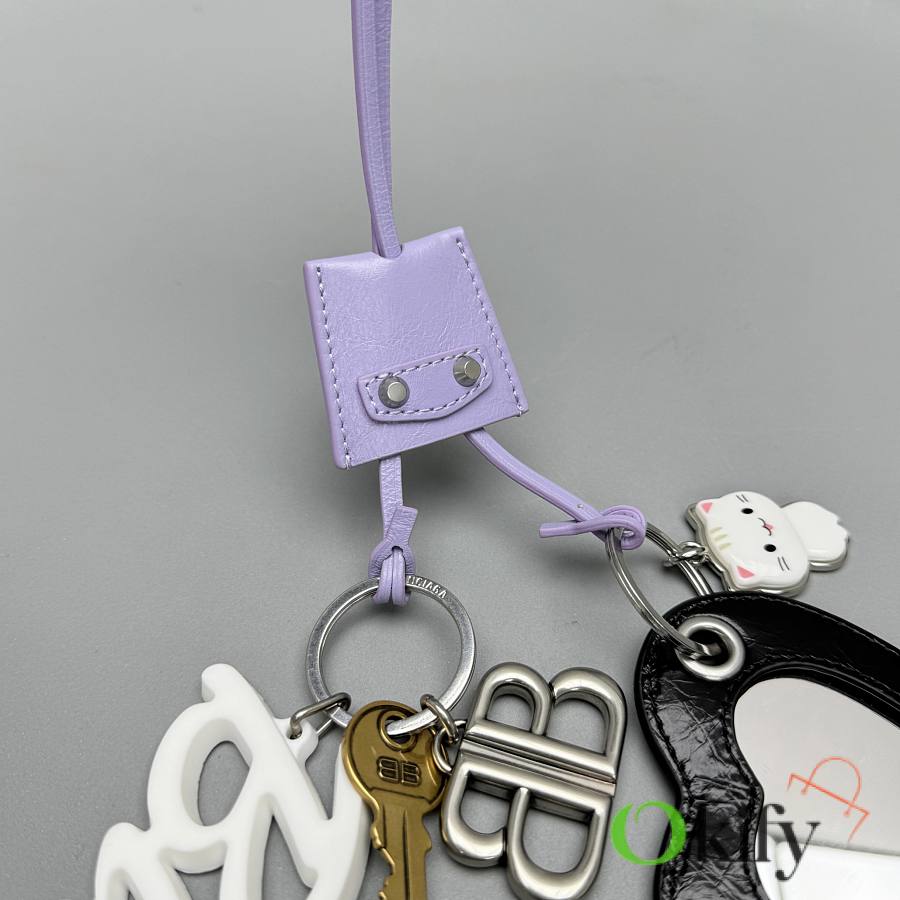 Okify Balenciaga Purple Tags, Heart And Meow Bag Charm
