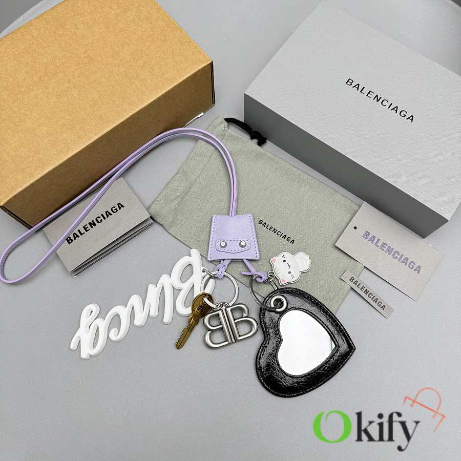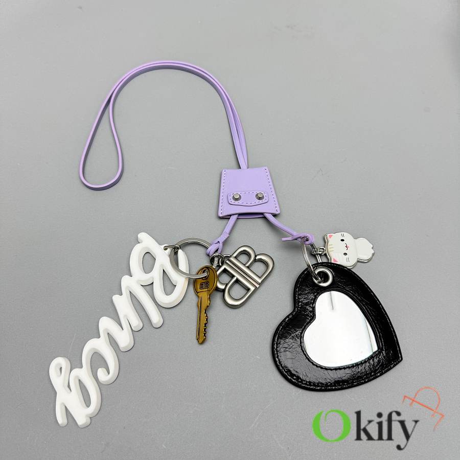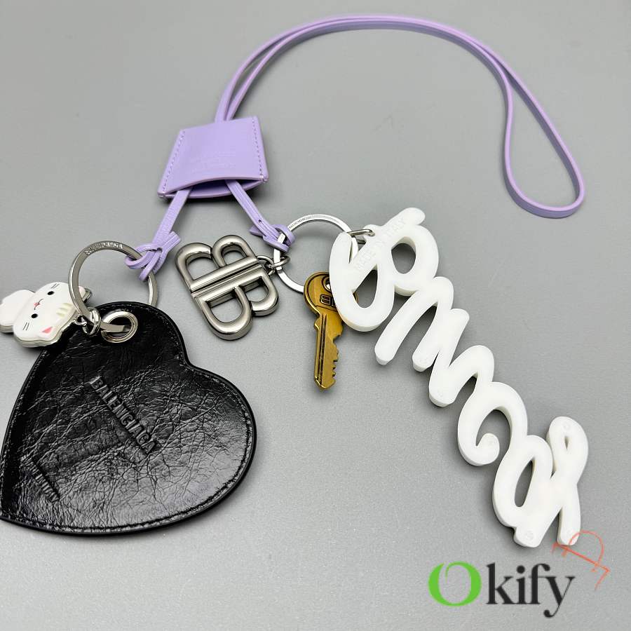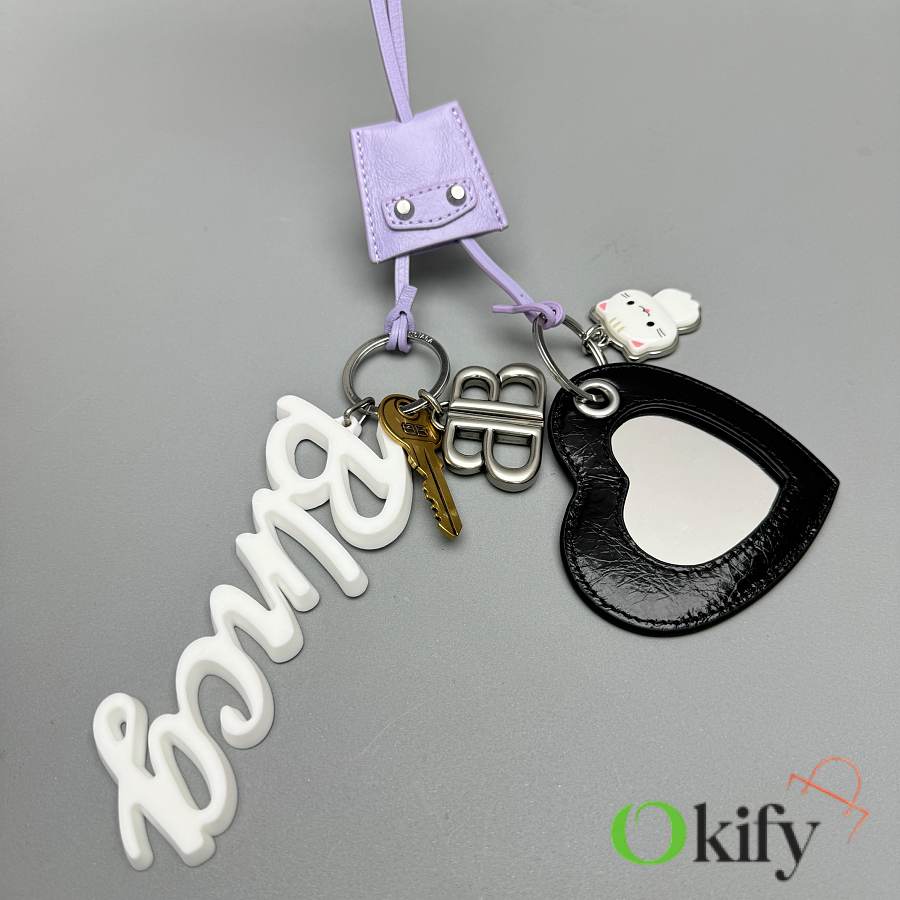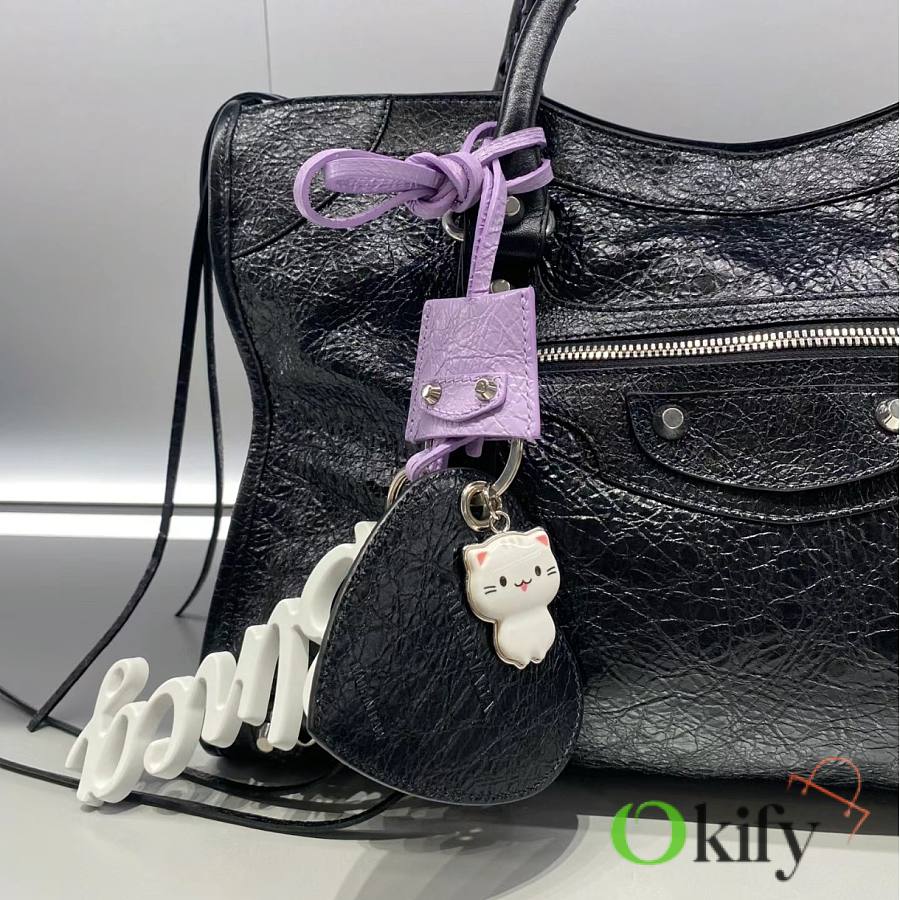 Okify Balenciaga Purple Tags, Heart And Meow Bag Charm