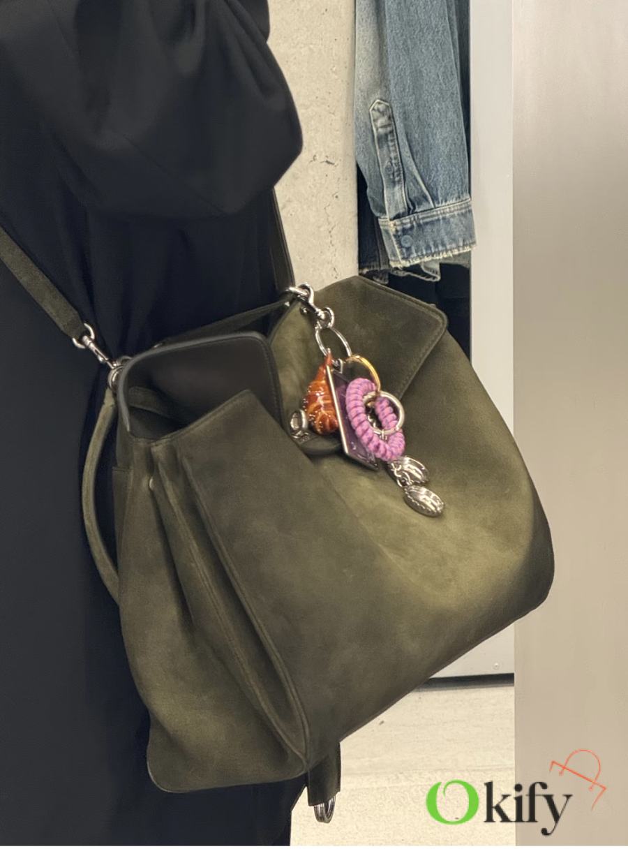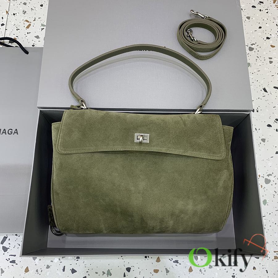 Okify Balenciaga Rodeo Medium Bag In Green Suede 34x11x24cm