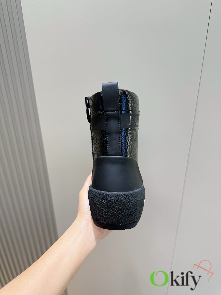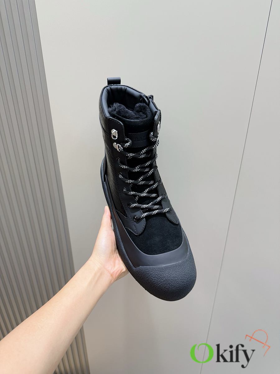 Crafted from supple Nappa leather for added comfort, these shoes feature a wool lining to insulate against the cold and provide extra cushioning, a lightweight rubber sole, and a straight-leg back zipper.
