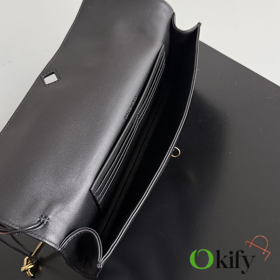 The Bottega Veneta Andiamo Clutch is crafted from Nappa lambskin, boasting a delicate yet dynamic texture that is soft yet structured, with a supple feel. Its design continues the brand's "quiet luxury" philosophy, featuring a simple and understated appearance with sophisticated details. The woven knotted metal clasp on the flap is a classic element of the brand. Combining practicality and elegance, it's suitable for daily commutes or various occasions. Item No.: 843797 (741511)