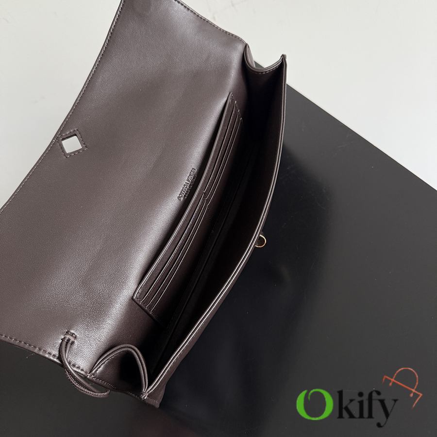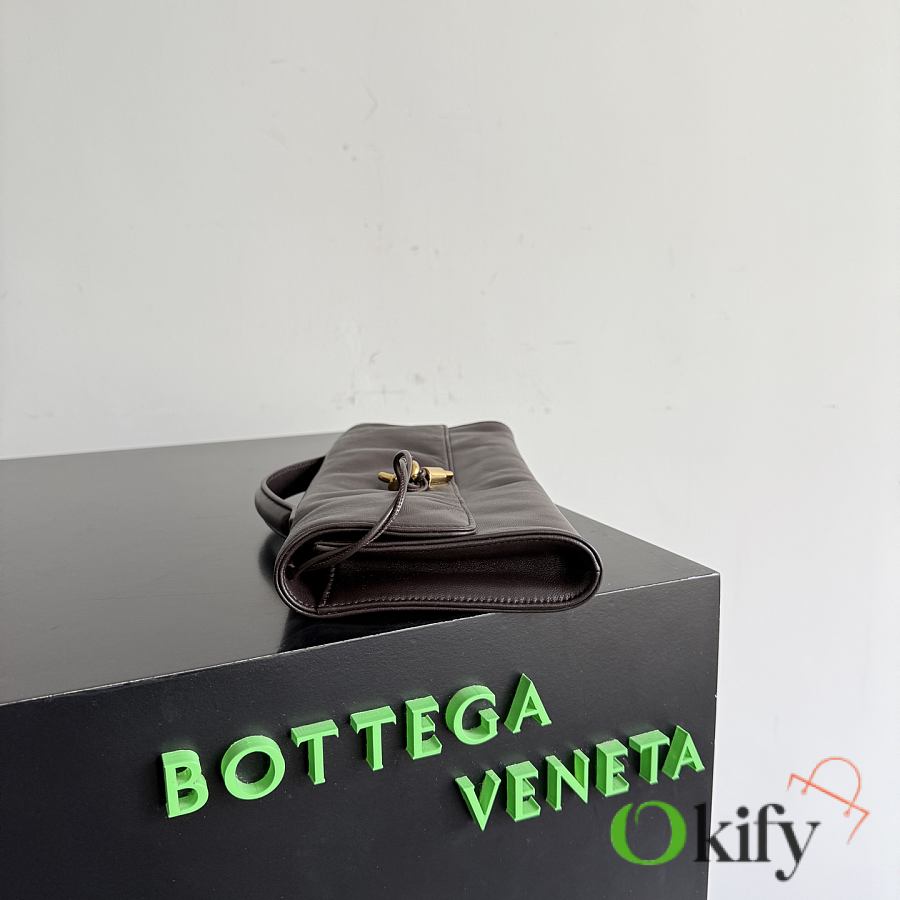 The Bottega Veneta Andiamo Clutch is crafted from Nappa lambskin, boasting a delicate yet dynamic texture that is soft yet structured, with a supple feel. Its design continues the brand's "quiet luxury" philosophy, featuring a simple and understated appearance with sophisticated details. The woven knotted metal clasp on the flap is a classic element of the brand. Combining practicality and elegance, it's suitable for daily commutes or various occasions. Item No.: 843797 (741511)
