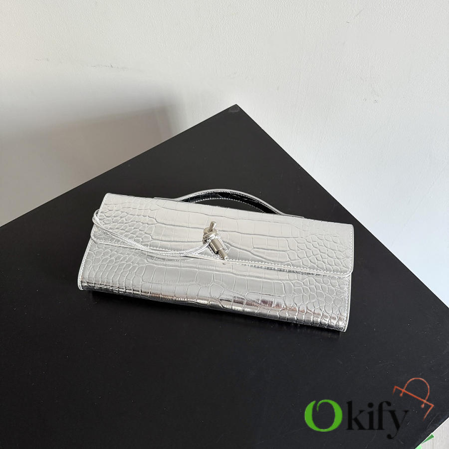 Okify Bottega Veneta Andiamo Clutch Bag Silver Crocodile 31x13x3cm