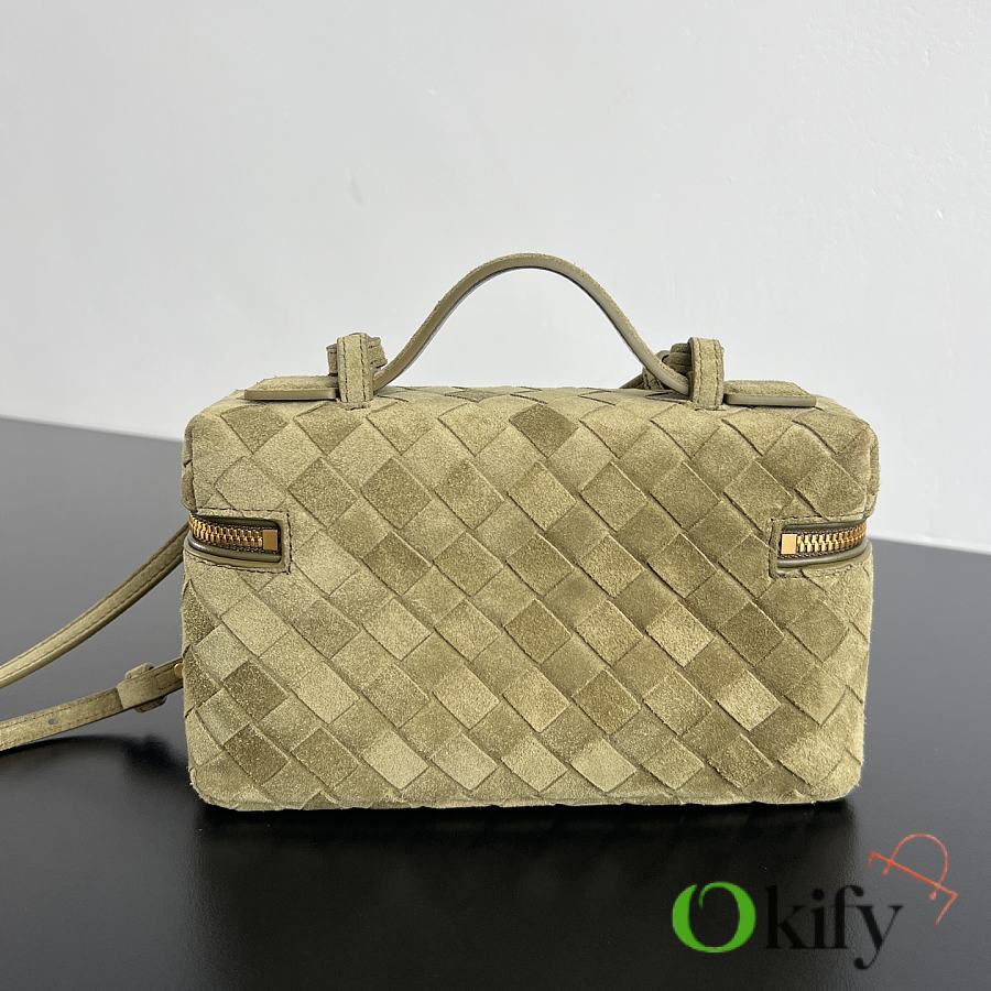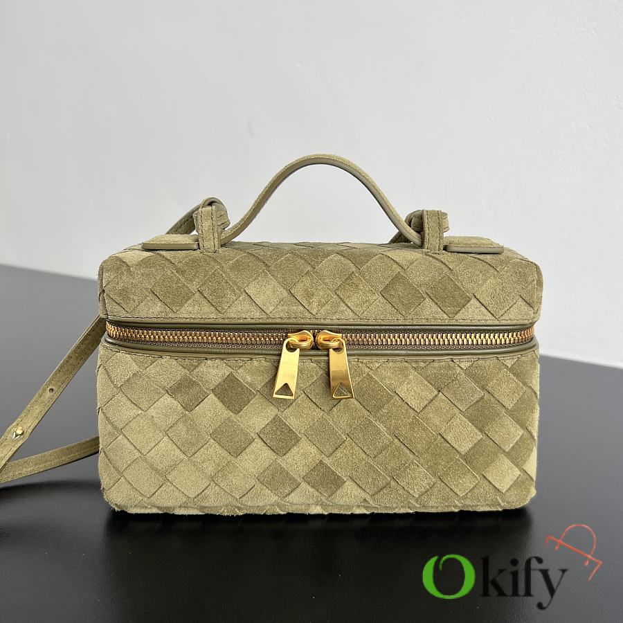 789109 This is a super practical and stylish box-shaped makeup bag! [fireworks emoji] Made with the brand's classic woven cowhide, it features a two-way zipper closure and an overall retro yet elegant style. The top handle and shoulder strap are adjustable. Carry it by hand for an elegant look, or wear it crossbody for a casual and relaxed vibe, perfect for various styling occasions.
