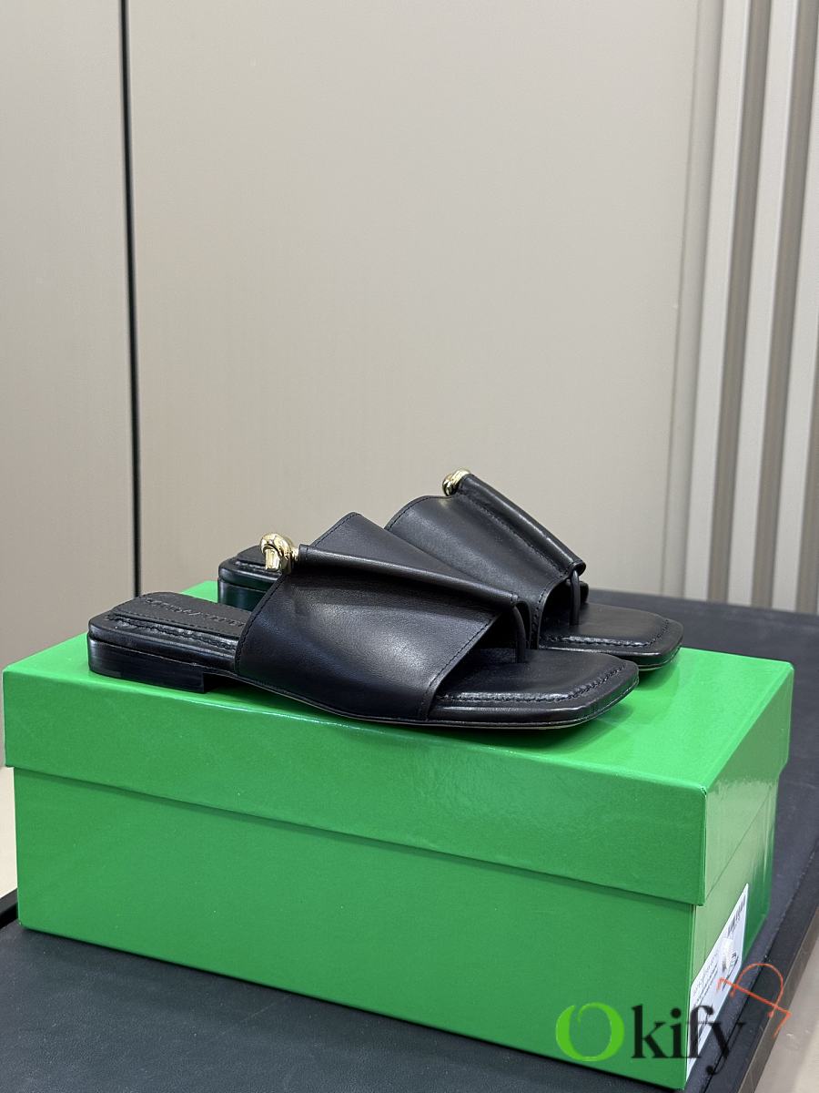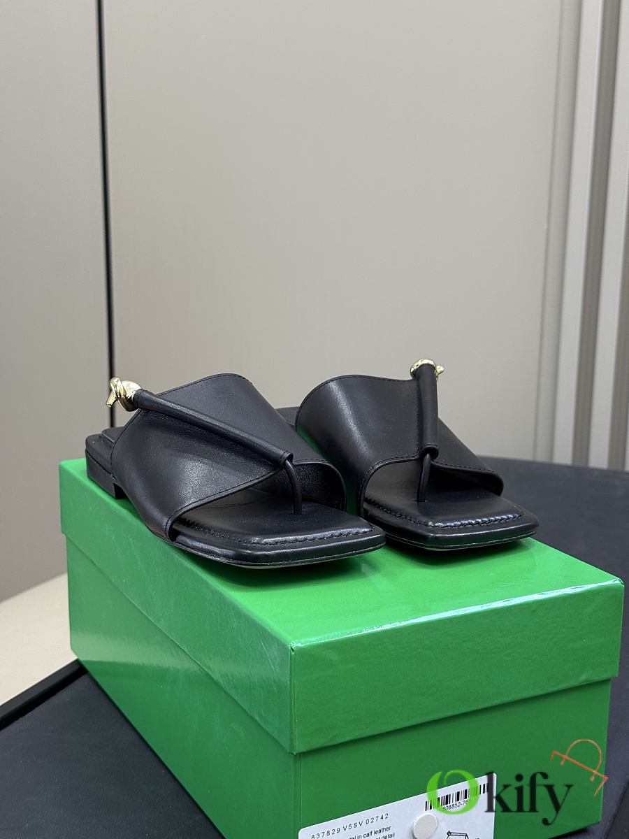 Okify Bottega Veneta Black Solstice Flat Thong Sandals
