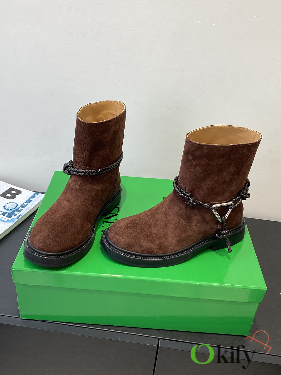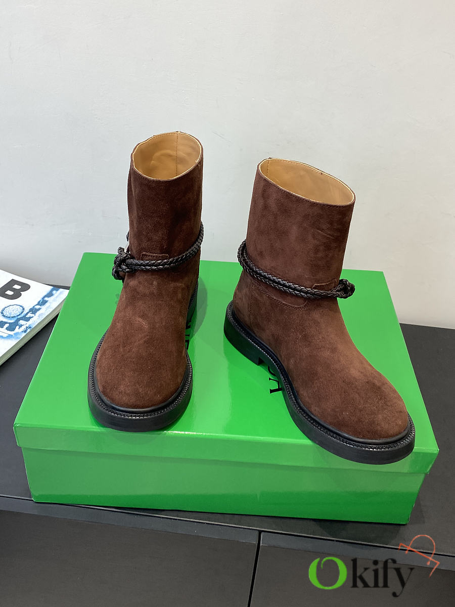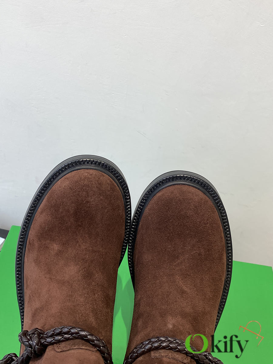 So cool! I fell in love with these rope-knot boots at first sight, I absolutely have to wear them! The classic knotted braided boots, paired with the iconic triangular metal buckle, create a striking black and silver contrast that exudes a cool and edgy vibe, instantly transforming you into a street style queen. Boots are incredibly flattering and elongate the legs. Whether paired with floor-length jeans for a casual, relaxed look, a mini skirt for a sexy vibe, or even tailored trousers for a professional, sophisticated style, they're a perfect match for autumn and winter outfits. They're the ultimate "all-purpose key" for any look. Suede upper, BV traditional dark brown cowhide lining, Italian genuine leather outsole, forefoot injection-molded non-slip rubber.