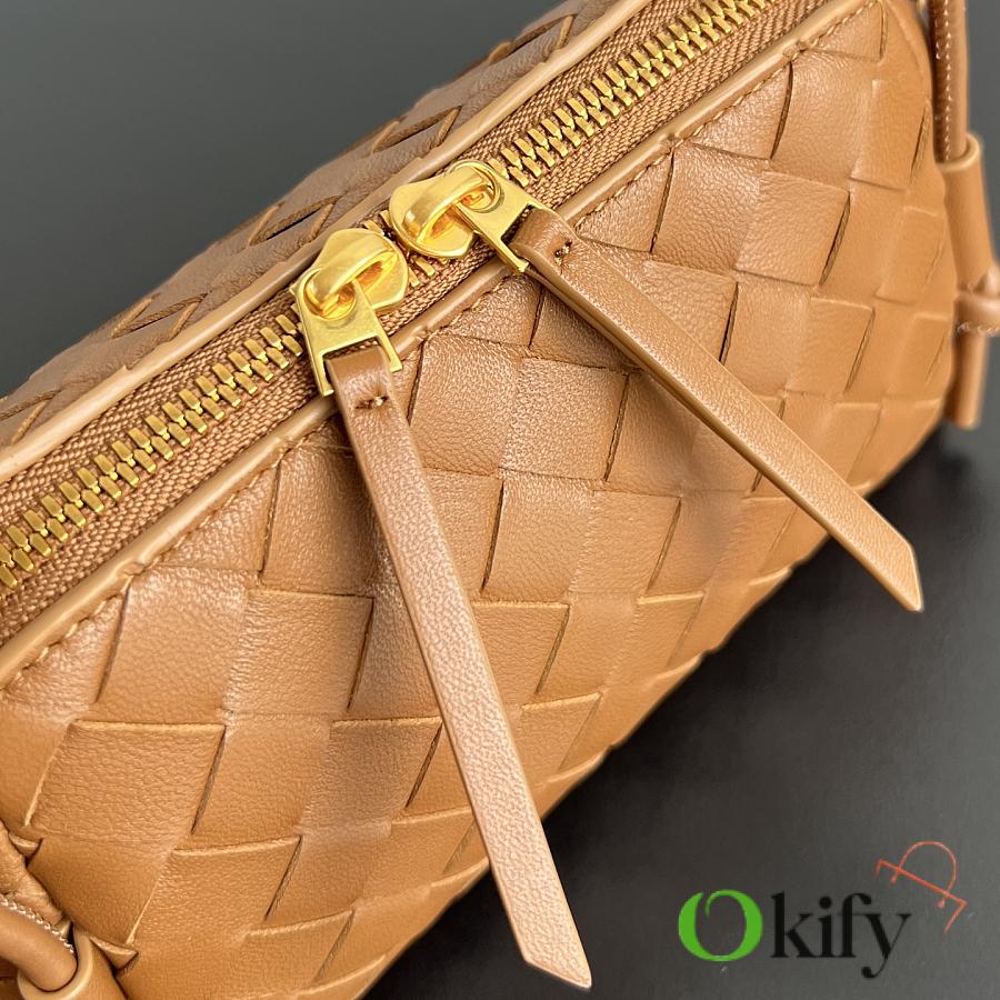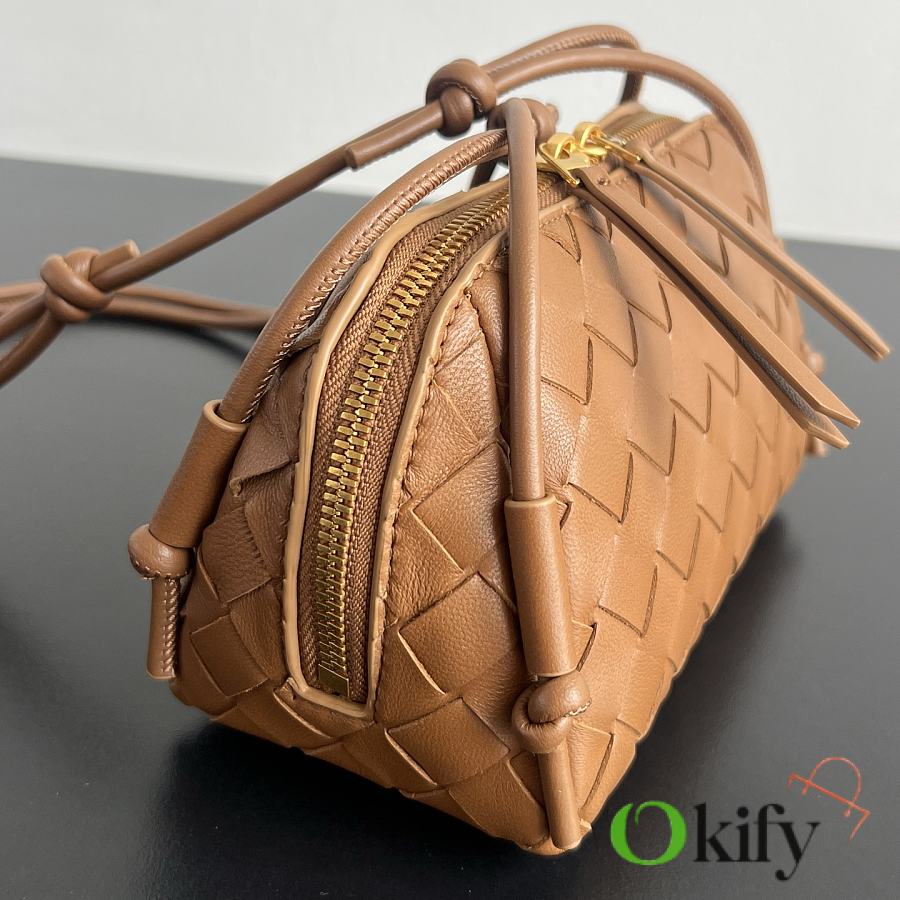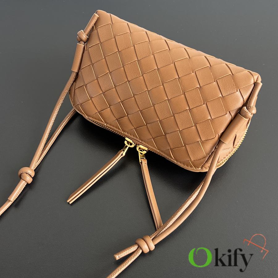 This is one of the most beautiful and practical mini bags out there. The bag features the classic Intrecciato weaving technique. It has a leather double-ended zipper, a wide opening for easy access, and an adjustable knotted shoulder strap, allowing it to be worn crossbody, under the arm, or as a clutch.