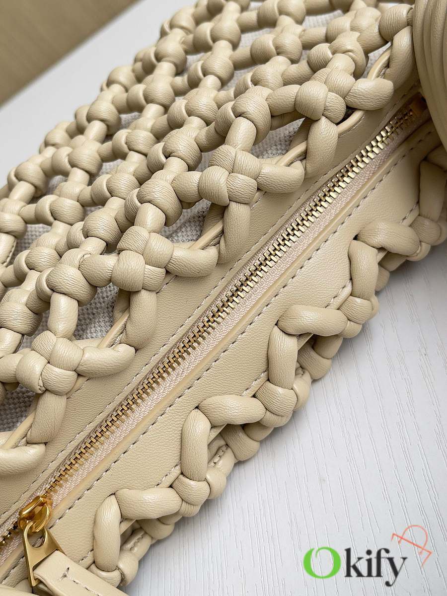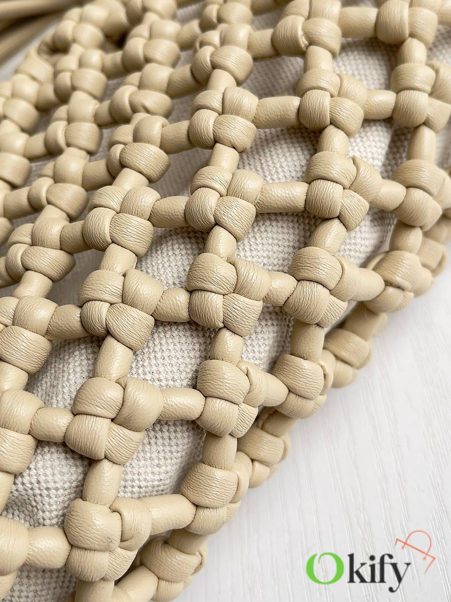 This bag has such a great design and will definitely look stylish when worn! BV Jodie Ramen Clutch It has a more sophisticated design than the previous version, featuring a cutout design with small flowers. The inner lining fabric offers a subtly visible view, making it super stylish and trendy. Made inside and out with imported sheepskin and featuring a new knotted design. It leaves a lasting impression, not only making a stylish statement, but also being small enough for everyday use, and exuding a unique and elegant charm. Carry it and stay at the forefront of fashion. Model Number: 717151