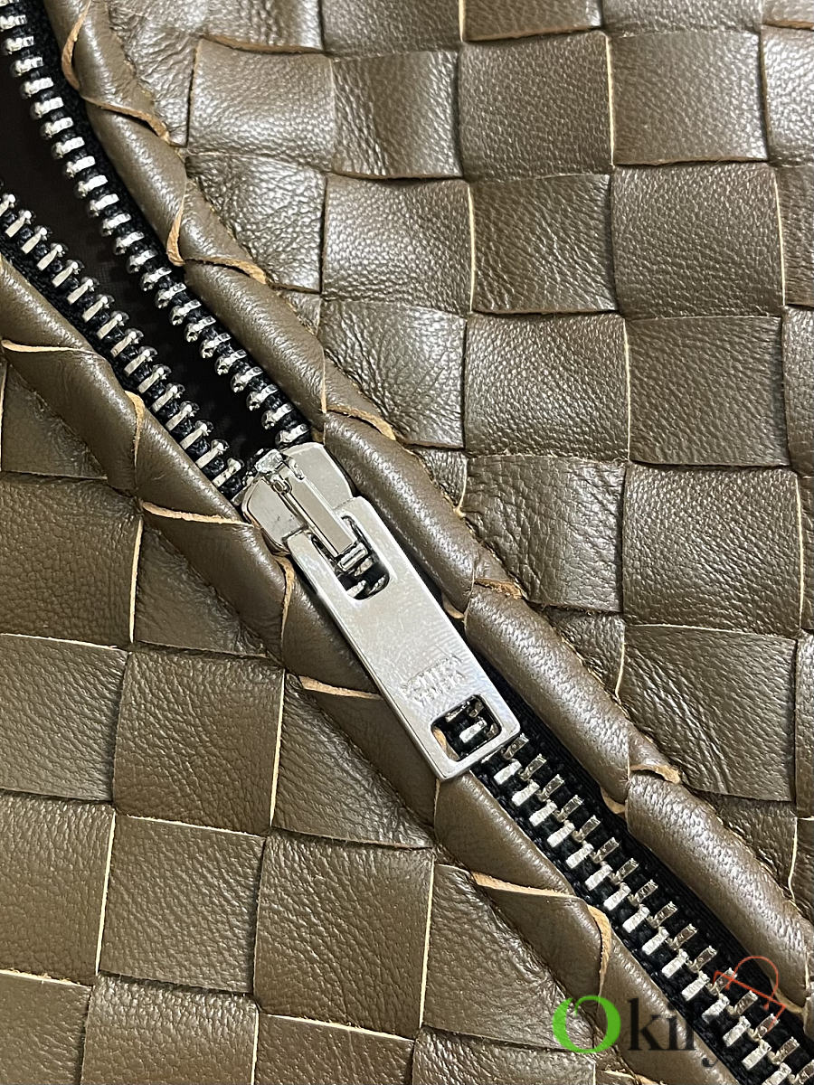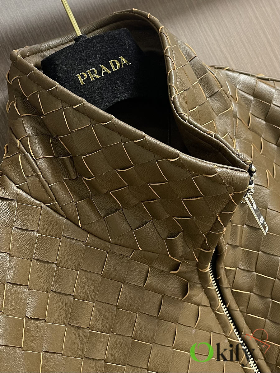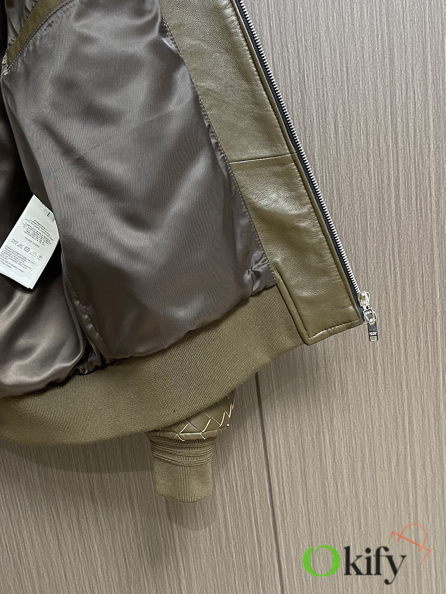 perfectly blending the brand's iconic Intrecciato weaving technique with luxurious leather. It embodies a sophisticated collision of high-end quality and avant-garde design. Made from carefully selected top-grade genuine leather, each stitch is hand-woven by artisans, reflecting the brand's century-old craftsmanship. The leather is delicate yet resilient, offering a premium feel and exceptional durability, setting it apart from ordinary leather items. The overall design utilizes a three-dimensional weaving technique, showcasing the brand's highly recognizable woven texture. Every stitch reflects Bottega Veneta's meticulous attention to detail. The sleek stand-up collar paired with a smooth metal zipper allows for effortless and sophisticated wear. Ribbed cuffs ensure comfort while adding a touch of sophistication. From fabric selection to craftsmanship, every detail reflects Bottega Veneta's luxury DNA, infusing your outfit with a luxurious aura and unique style – the perfect choice to express your taste and style