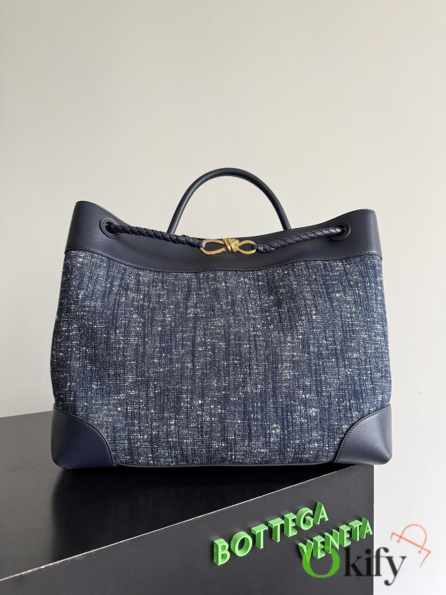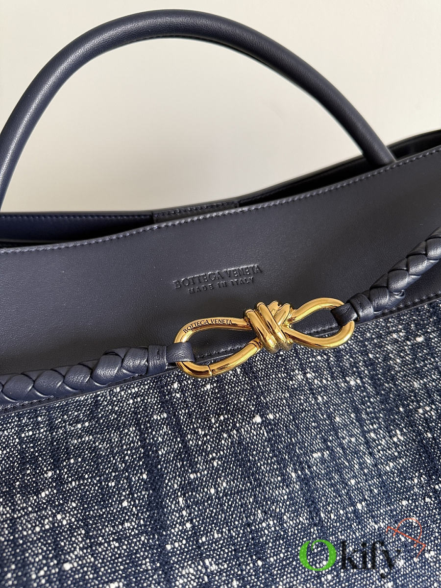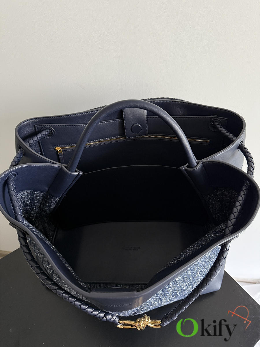 The Andiamo denim bag is here! Featuring a combination of velour and denim, the denim blue color scheme is incredibly sophisticated. The contrasting gingham lambskin lining adds a touch of vintage elegance while maintaining a refined look. It exudes a fresh and natural feel, striking a perfect balance without being overly formal. This bag is sure to stand out in a crowd. The coaxial woven shoulder strap and knotted rope details the remaining finishing touches