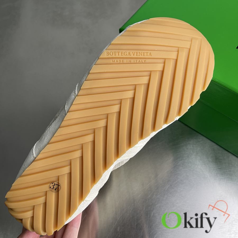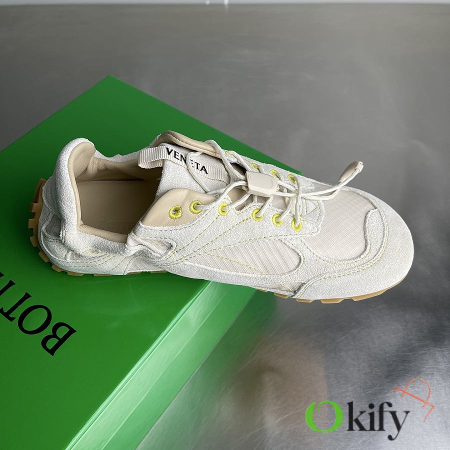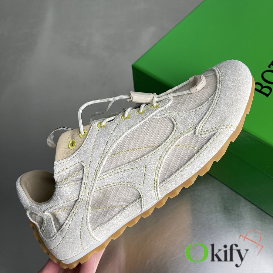 Okify Bottega Veneta Orbit Flash White Suede Sneakers