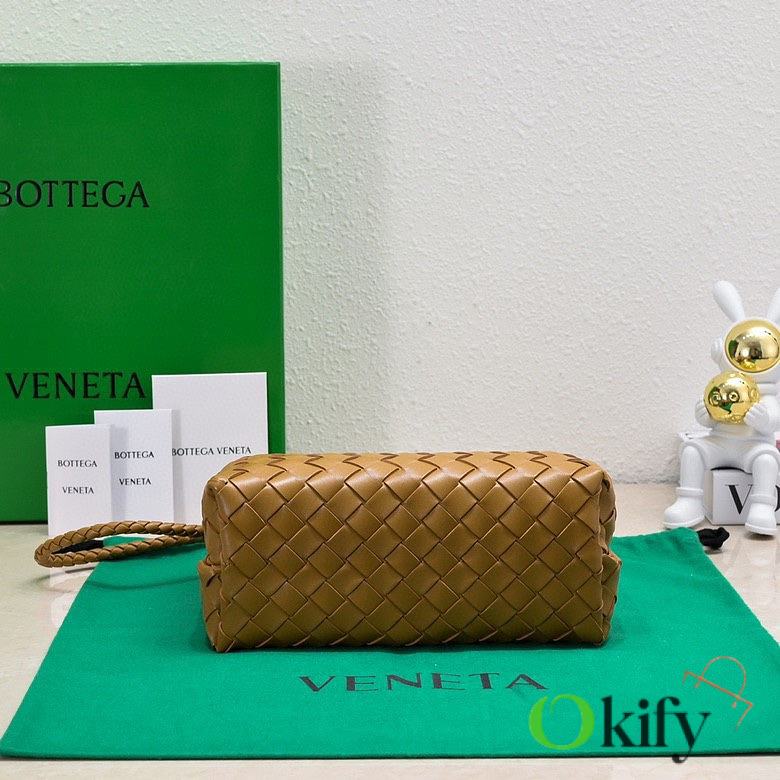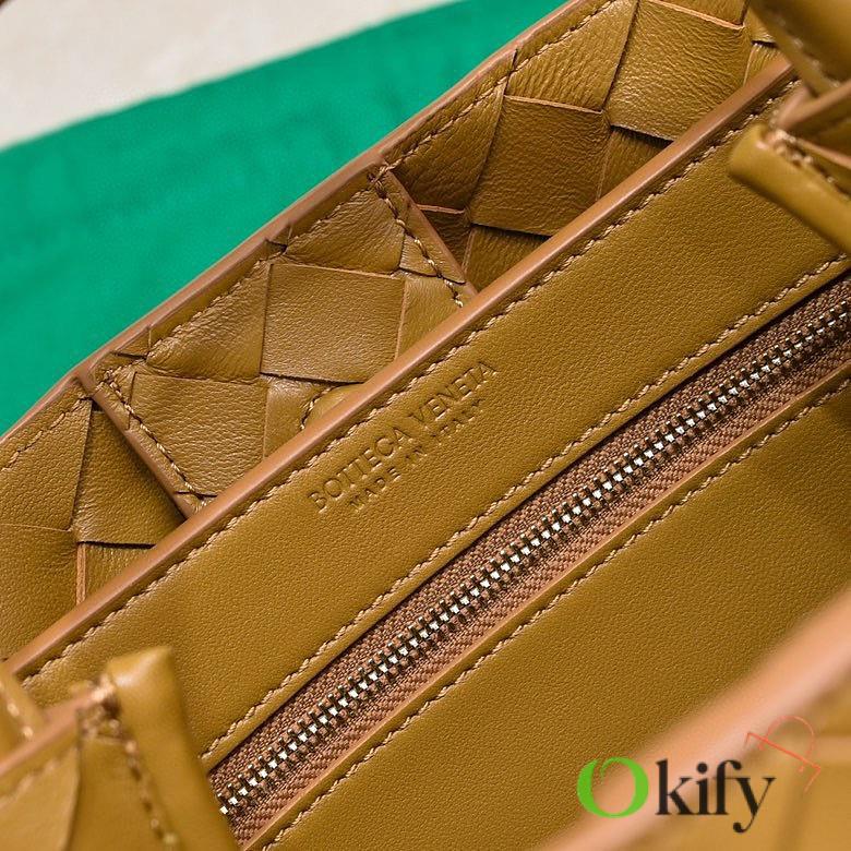 This time, the shoulder strap is woven from tubular strips, showing a different craftsmanship. This small intrecciato leather tote features a sliding crossbody strap and interior compartments, including one zippered and two open pockets with a magnetic snap closure.