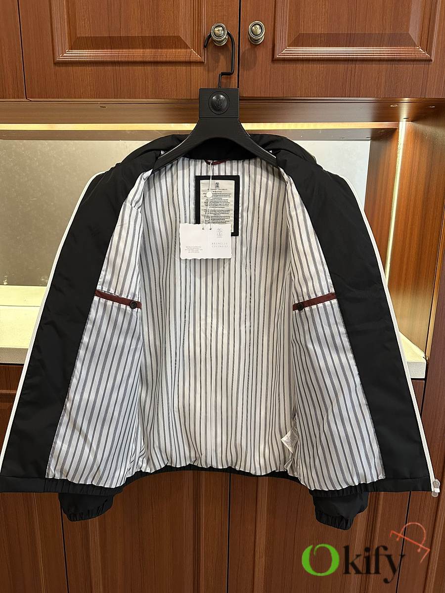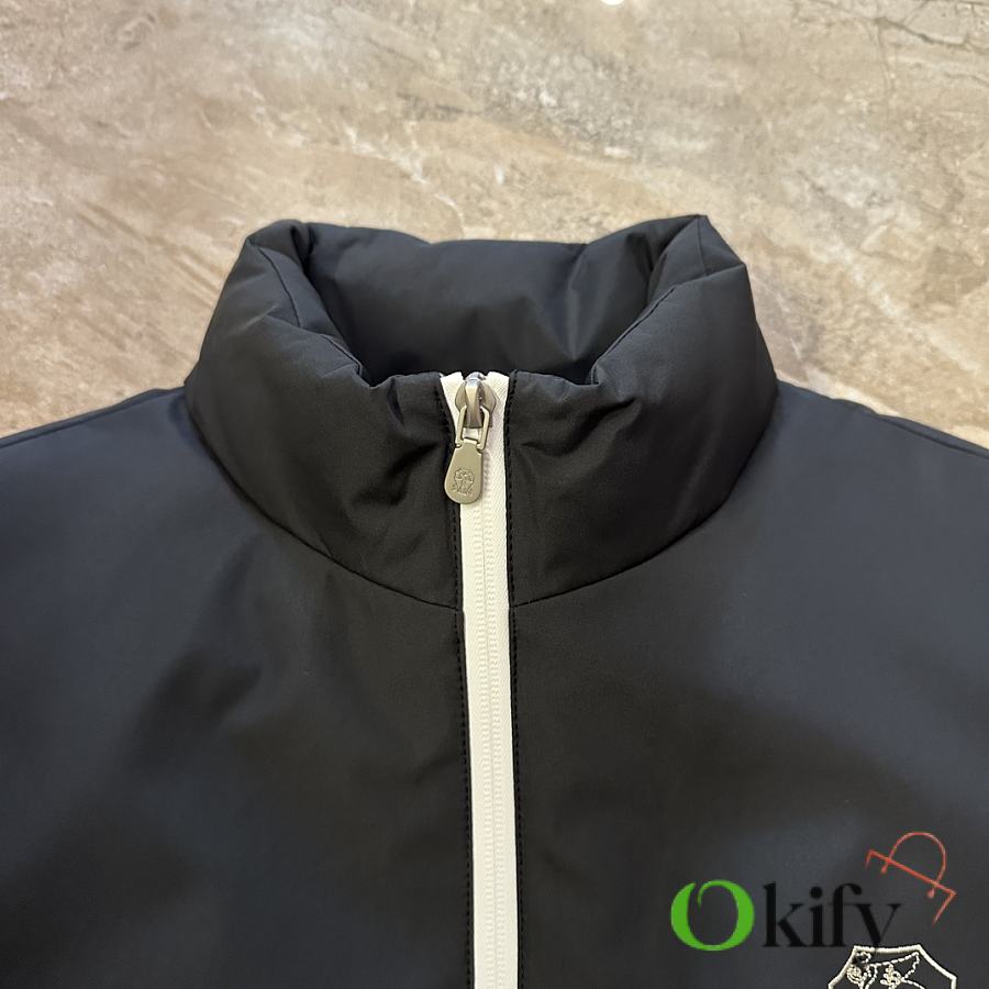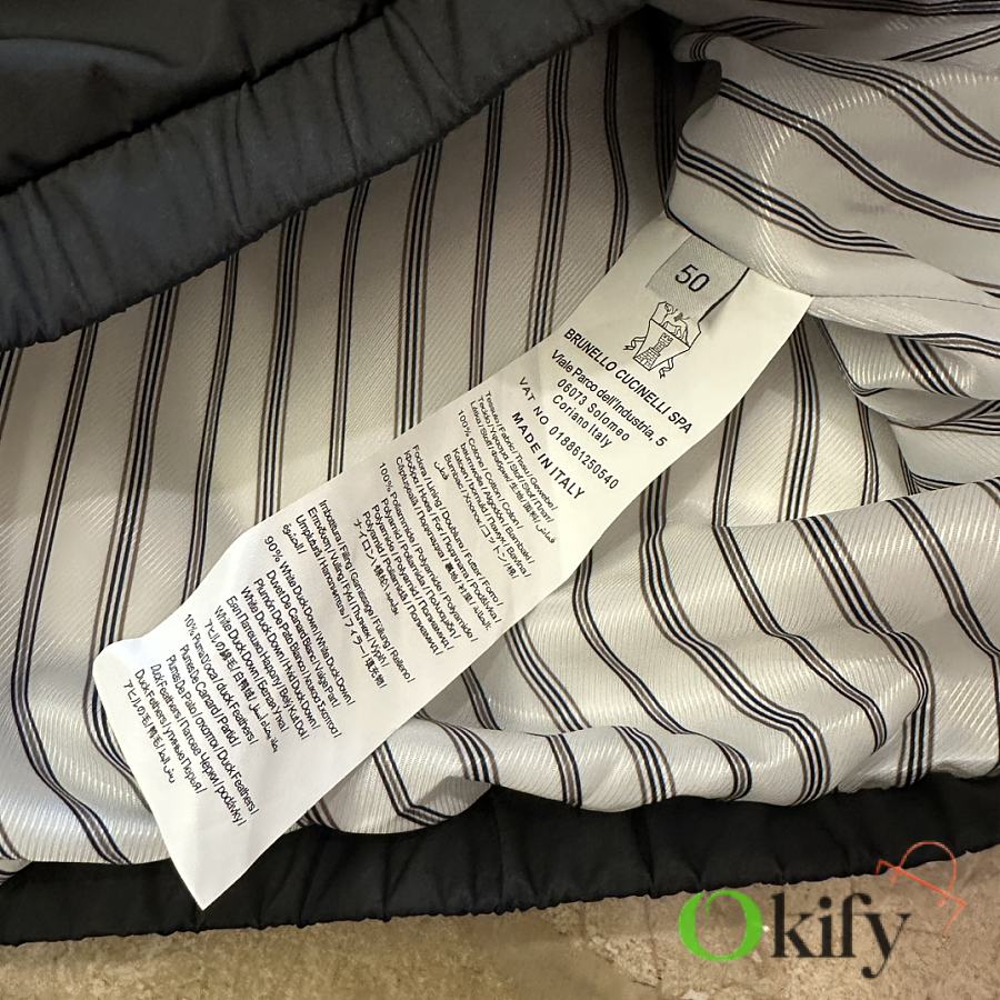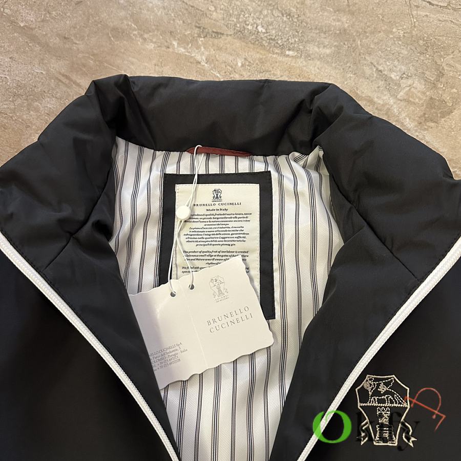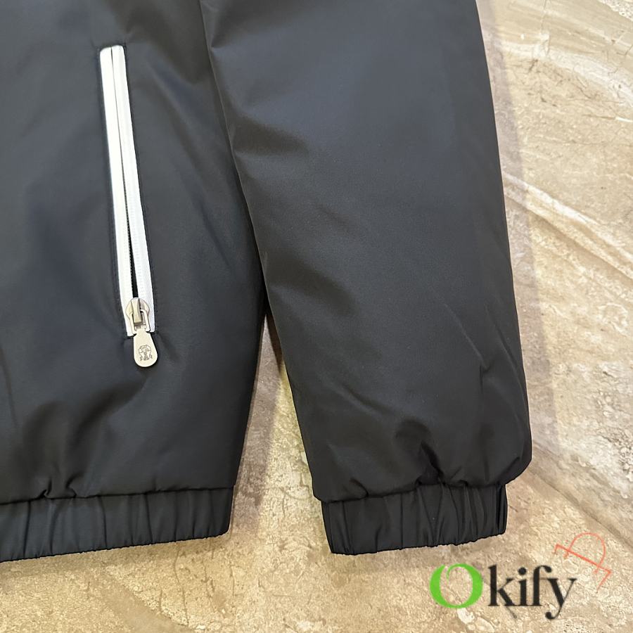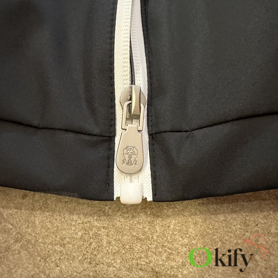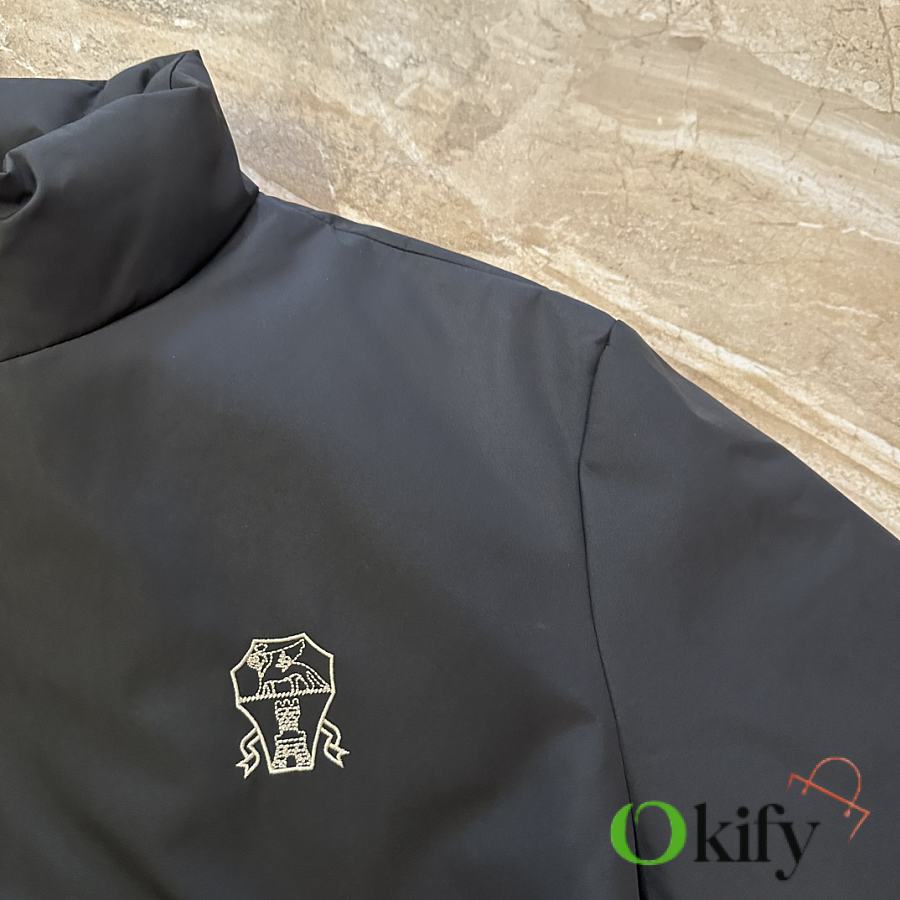 suitable for both business and leisure, is made of nylon polyester windproof and waterproof fabric, with a hood design for warmth, and the brand’s letter logo embroidered on the chest highlights the brand’s luxury. It has a striped polyester lining, and the down filling inside is 90% white duck down + 10% wool. The placket has customized hardware zipper accessories, and the original factory label washed wheat head is a must-have for high-end people.