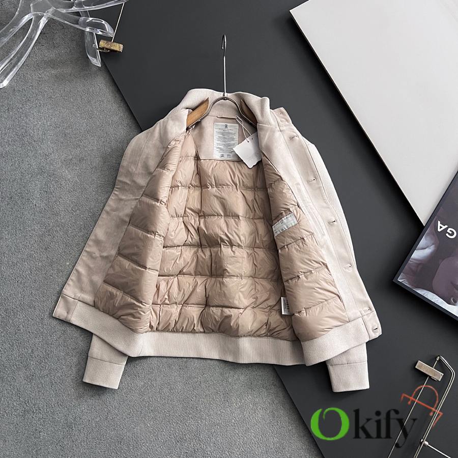 Okify Brunello Cucinelli White Bomber Jacket With Quilted Lining For Men