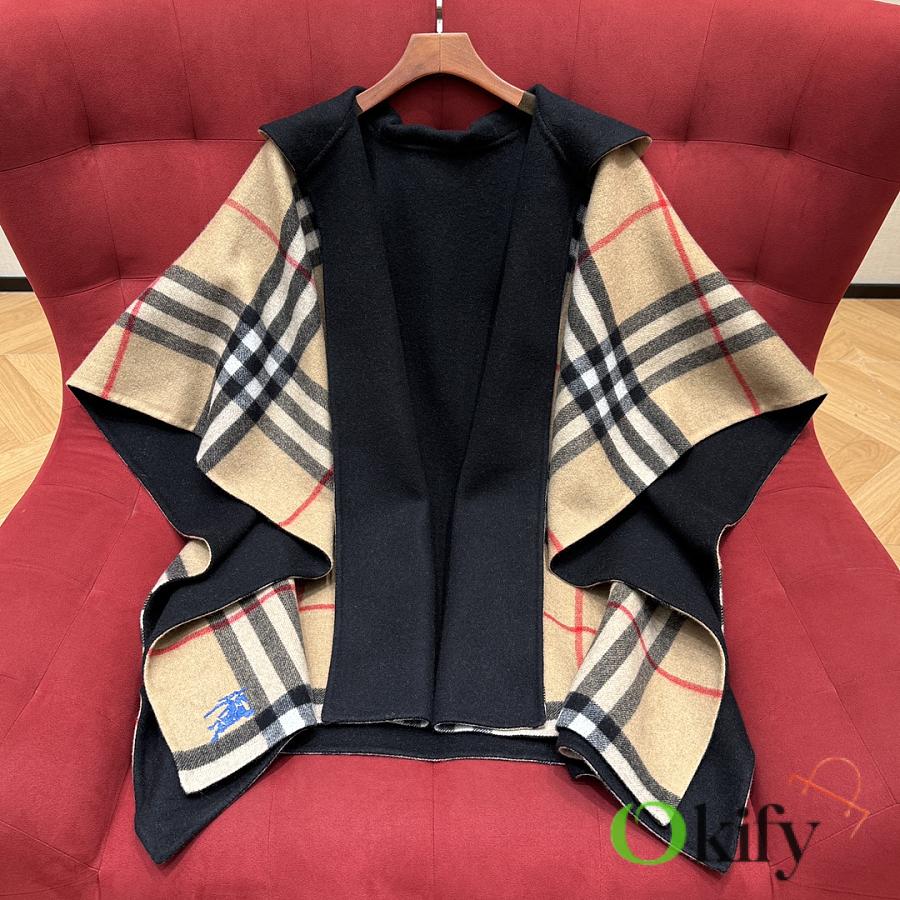 Okify Burberry Black And Beige Plaid Reversible Cashmere Scarf 176×120cm