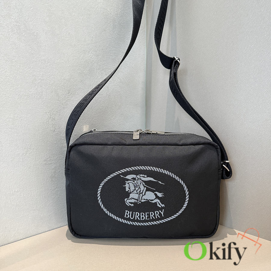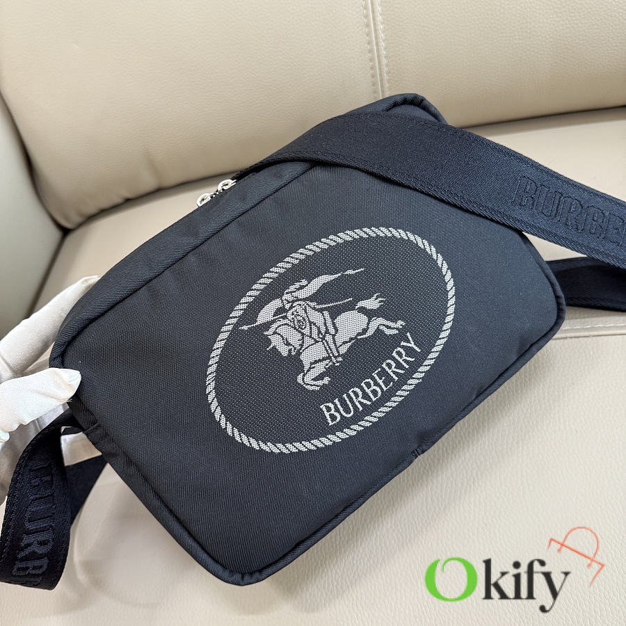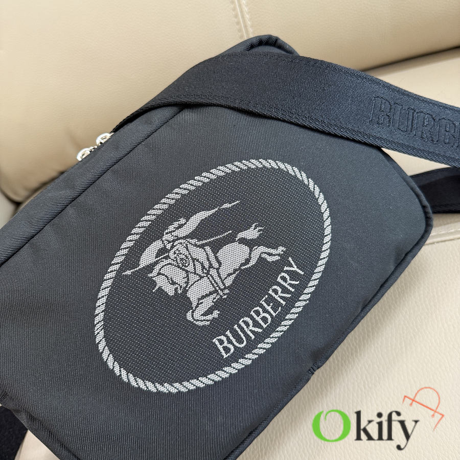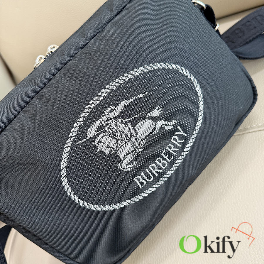 Burberry's latest crossbody bag features a finely woven knight's stamp adorning the interior, echoing the color scheme of the lining. Crafted from reflective yarn, it's a motif inspired by a vintage pattern from the brand's 1980s bags. The shoulder strap adds a touch of elegance. Adorned with a matching Burberry logo, it can be adjusted to create a shoulder or crossbody look. The front is decorated with the EKD (Earth Knight's) emblem.