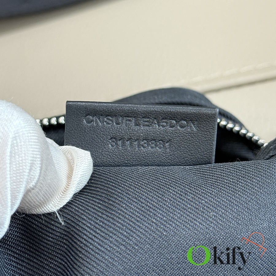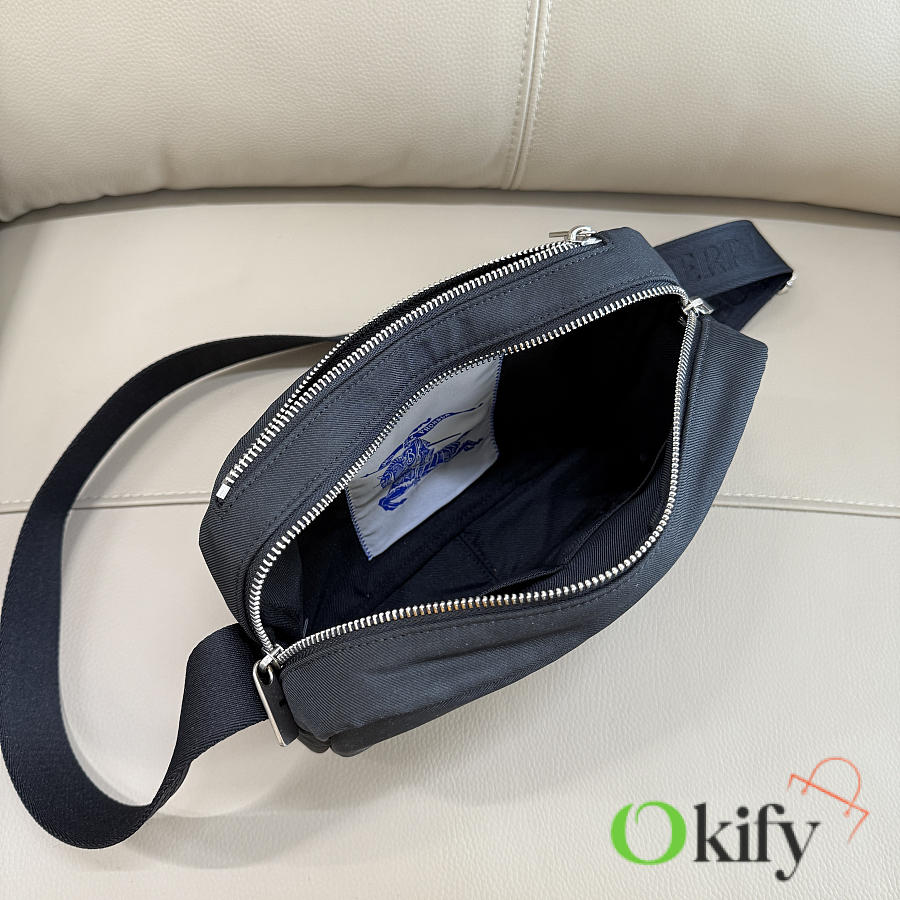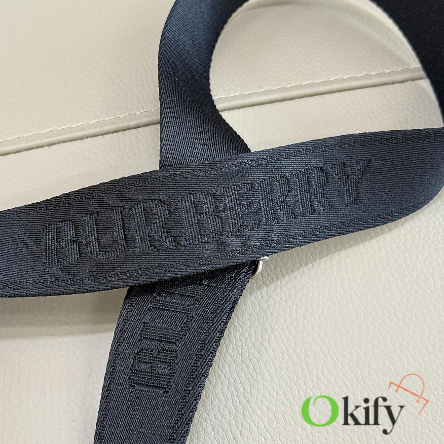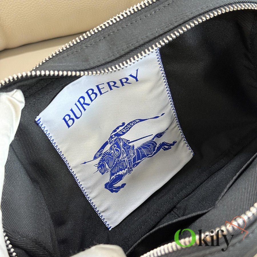 Burberry's latest crossbody bag features a finely woven knight's stamp adorning the interior, echoing the color scheme of the lining. Crafted from reflective yarn, it's a motif inspired by a vintage pattern from the brand's 1980s bags. The shoulder strap adds a touch of elegance. Adorned with a matching Burberry logo, it can be adjusted to create a shoulder or crossbody look. The front is decorated with the EKD (Earth Knight's) emblem.