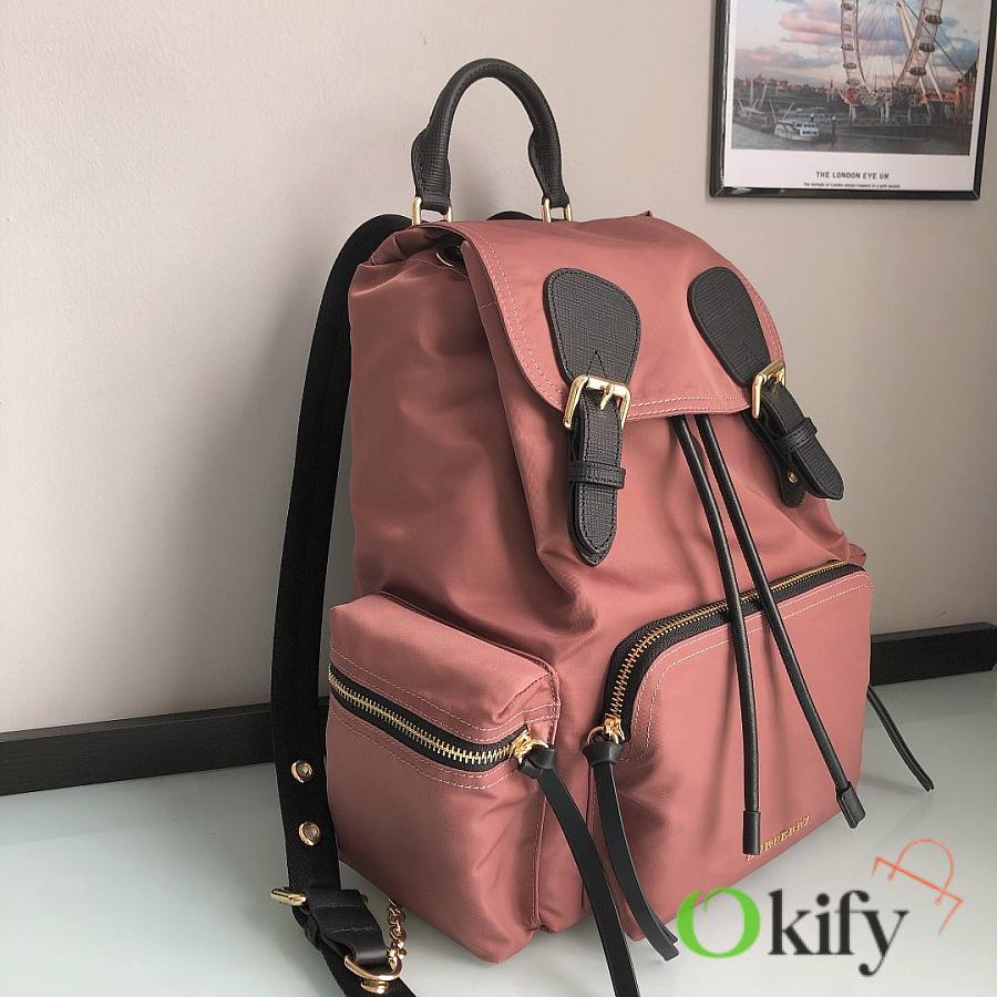 Okify Burberry Check Nylon Backpack in sand color 31x16x46cm