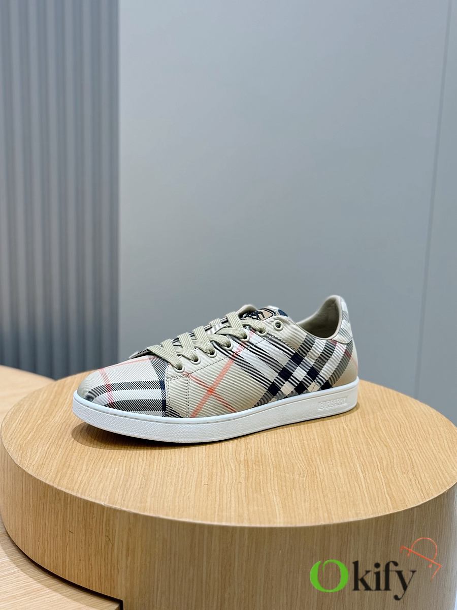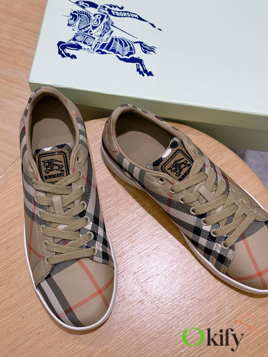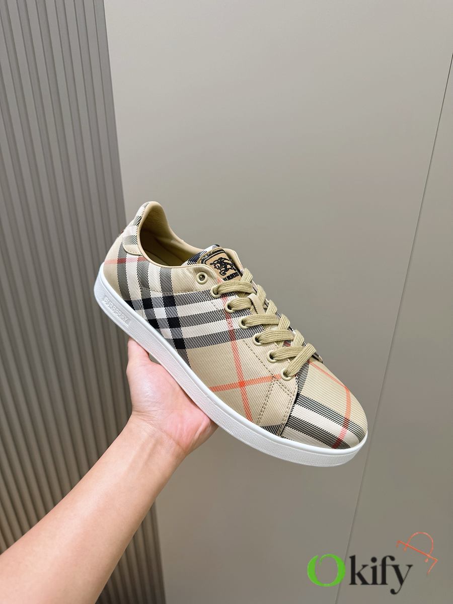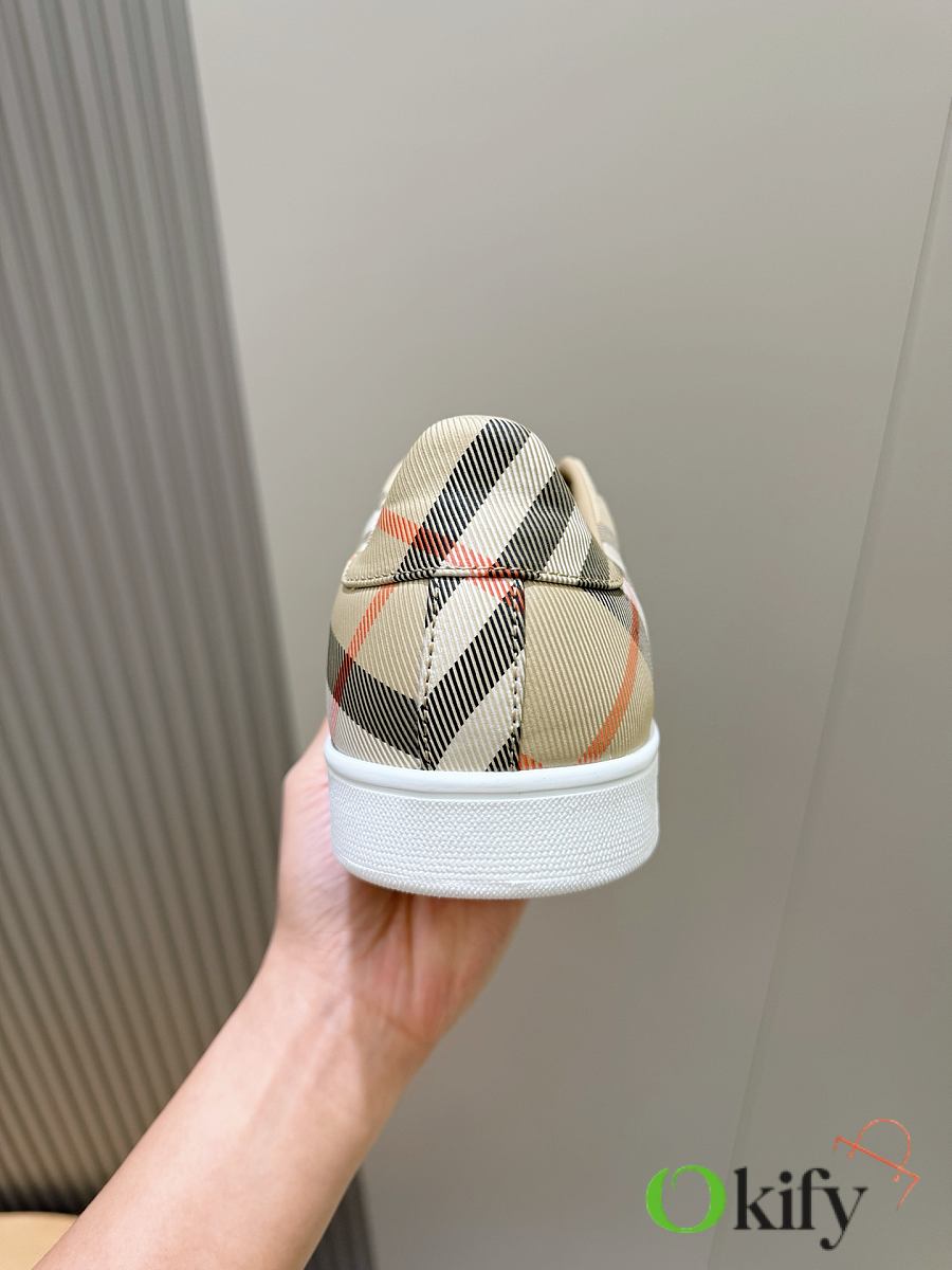 Crafted from a cotton blend fabric. Adorned with a finely woven Burberry check pattern. Features a mesh lining, check-in laces, and a rubber outsole adorned with the iconic Burberry logo. The Classic Collection interprets wardrobe essentials with a distinctive brand style. - Round toe - The tongue is adorned with an equestrian rider logo. - Leather insoles - Brand logo adorns the sole Size: 39-44 (38 and 45 are custom-made)