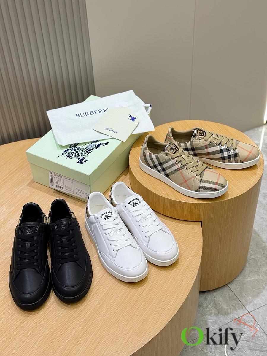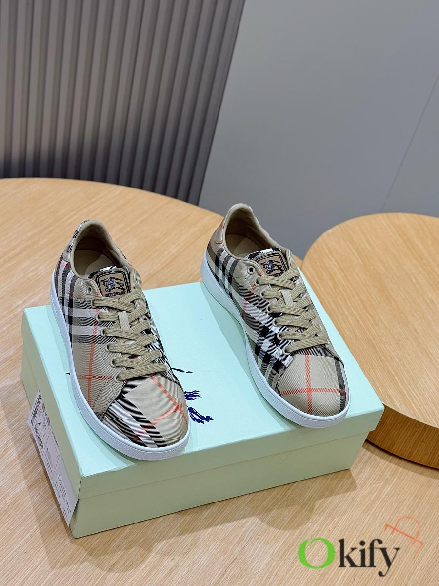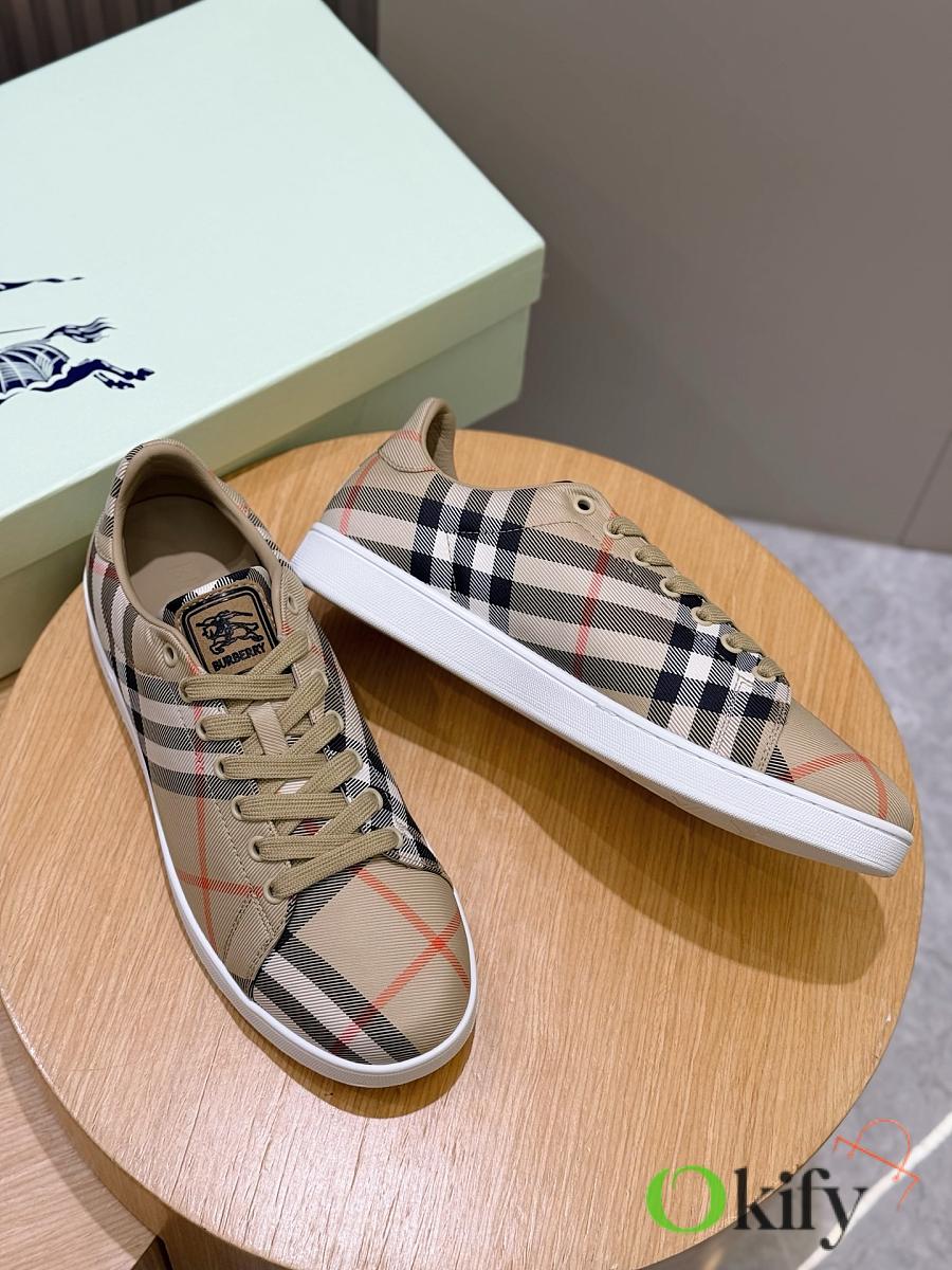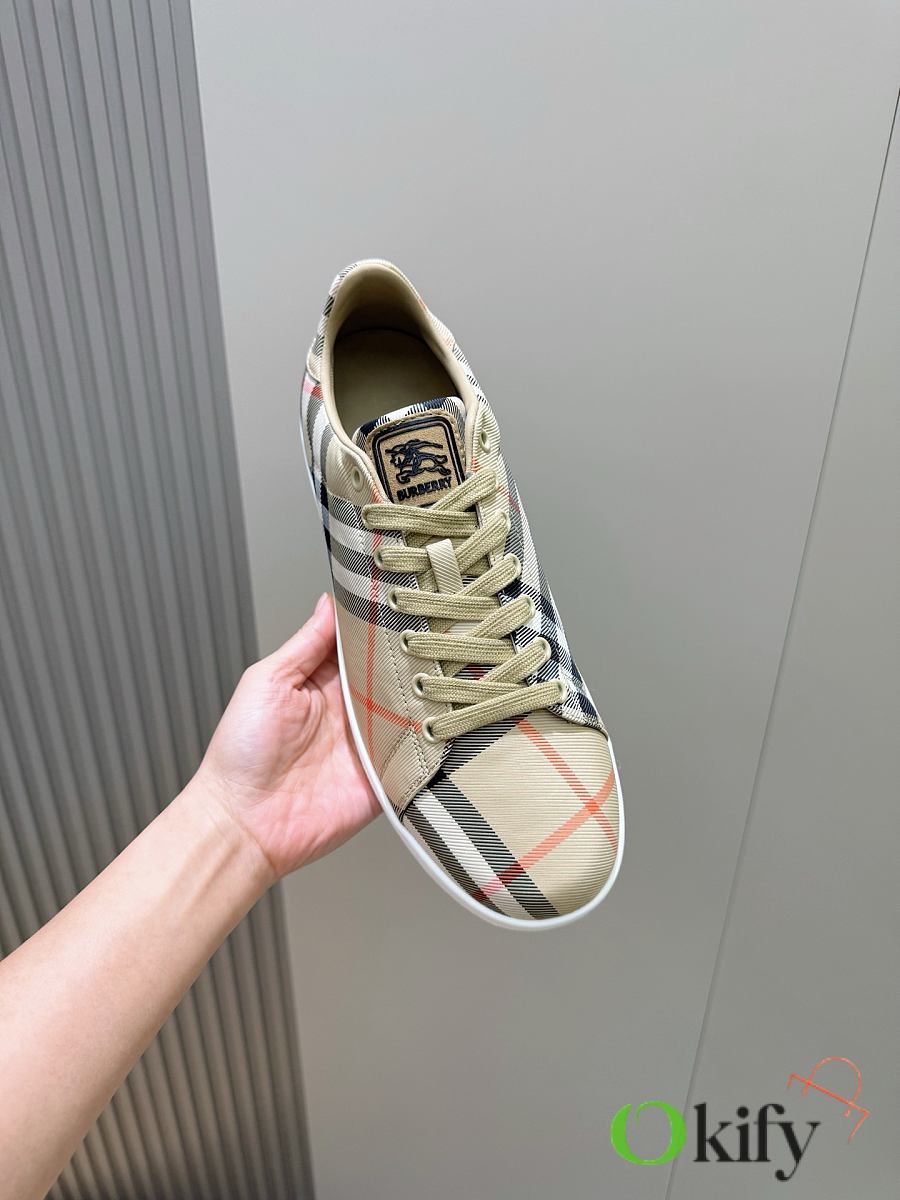 Crafted from a cotton blend fabric. Adorned with a finely woven Burberry check pattern. Features a mesh lining, check-in laces, and a rubber outsole adorned with the iconic Burberry logo. The Classic Collection interprets wardrobe essentials with a distinctive brand style. - Round toe - The tongue is adorned with an equestrian rider logo. - Leather insoles - Brand logo adorns the sole Size: 39-44 (38 and 45 are custom-made)