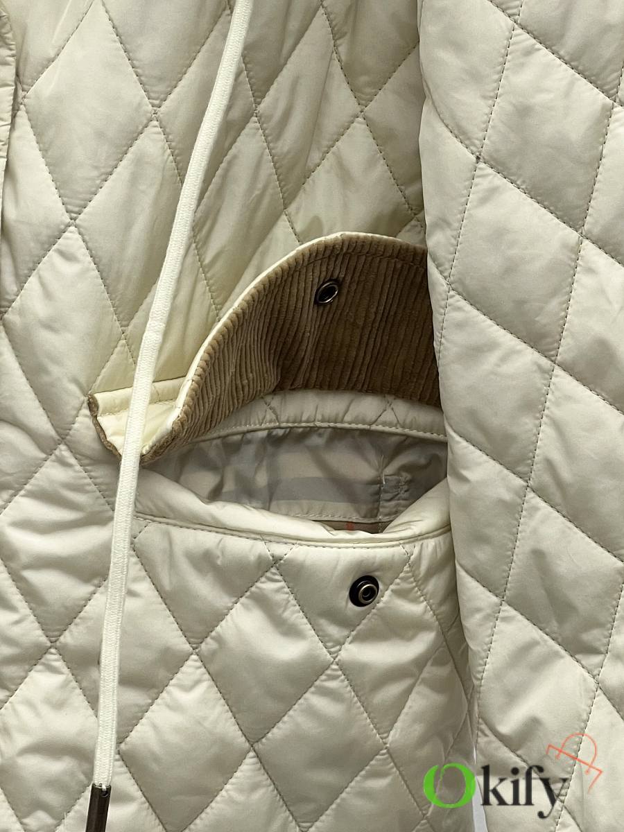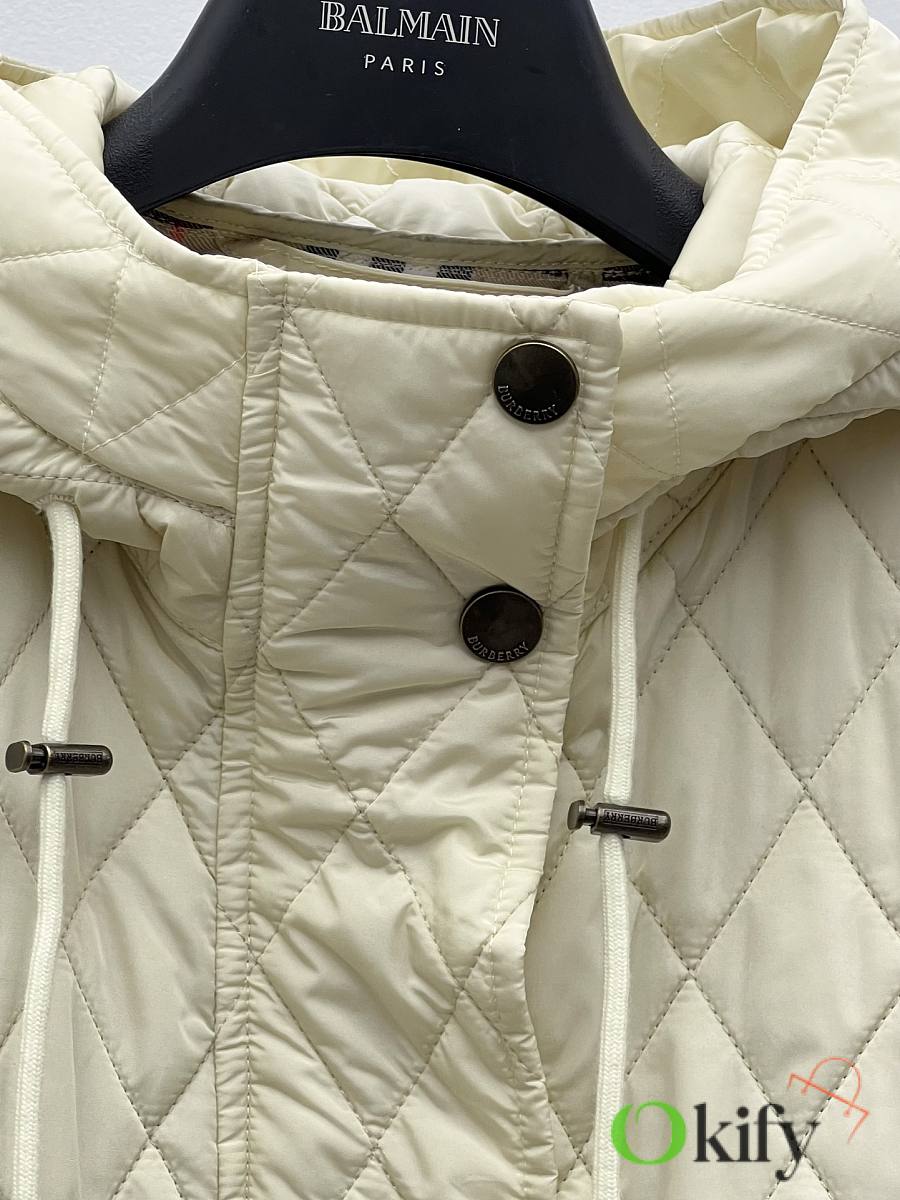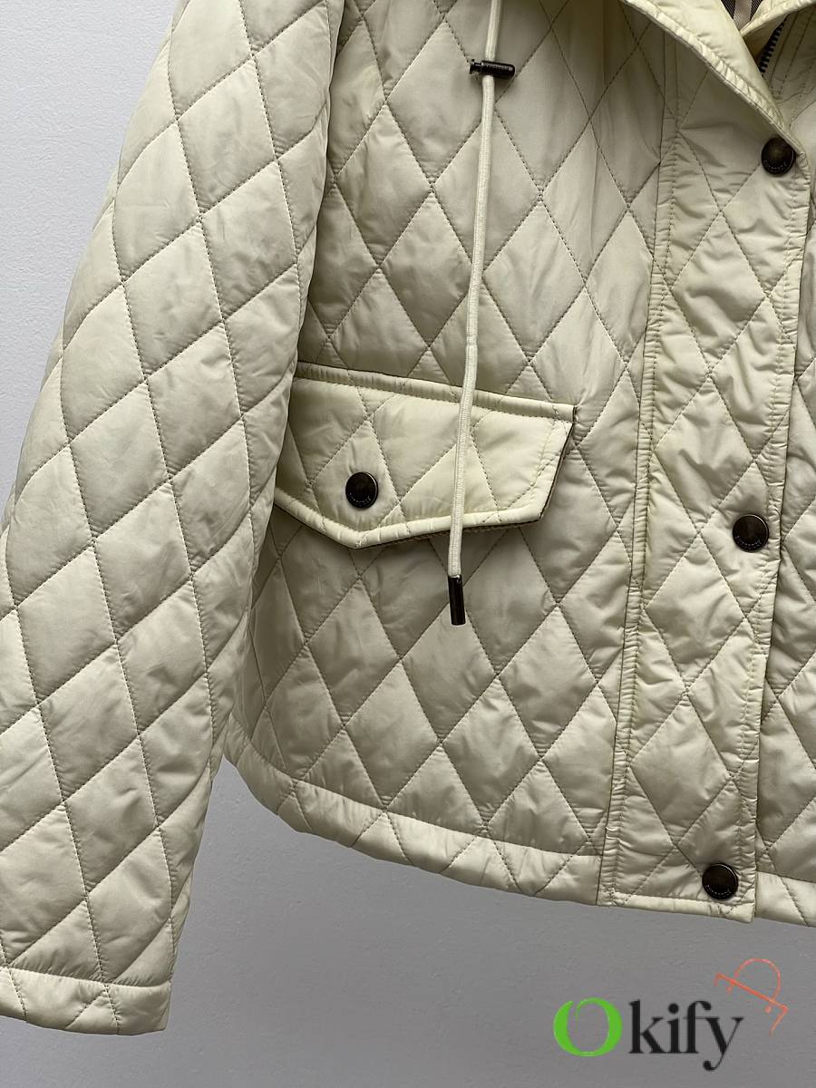 The diamond-stitched quilted jacket is made of lightweight nylon fabric The short version features a drawstring hood design With bbr check cotton twill lining Casual and age-reducing, practical and versatile