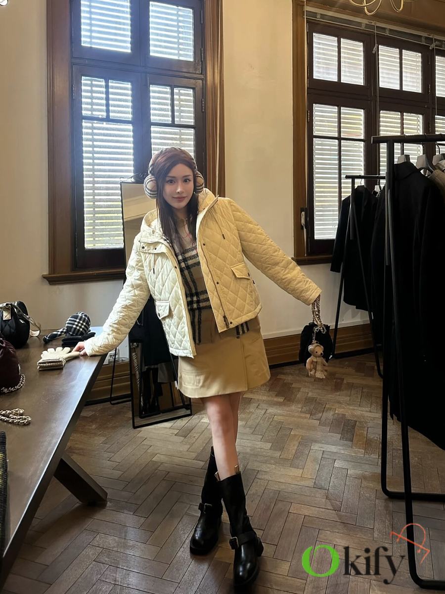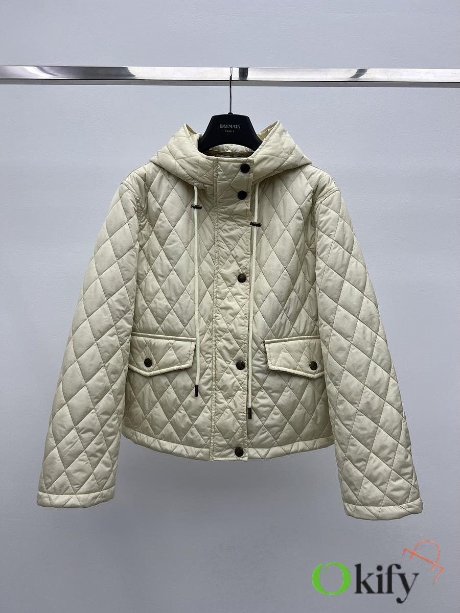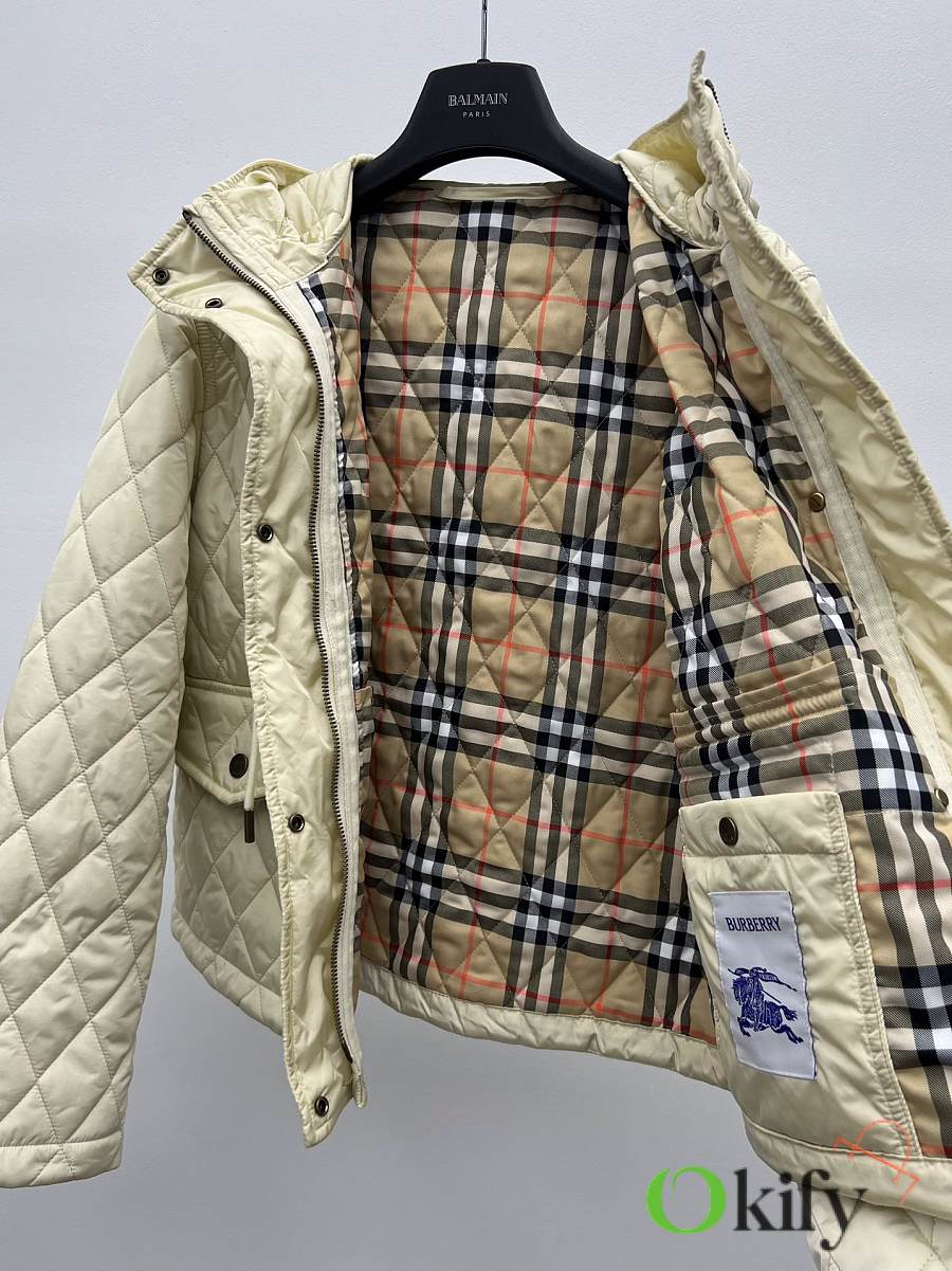 The diamond-stitched quilted jacket is made of lightweight nylon fabric The short version features a drawstring hood design With bbr check cotton twill lining Casual and age-reducing, practical and versatile