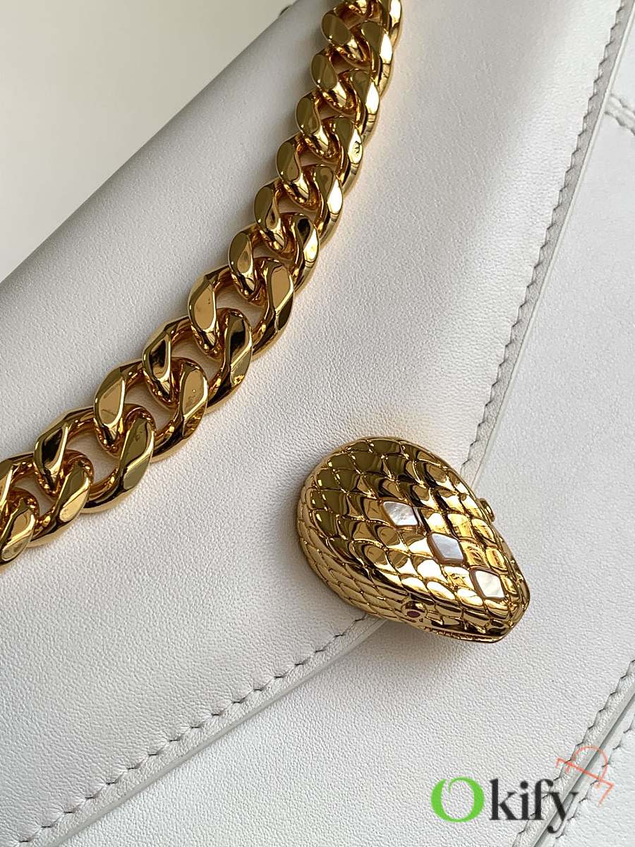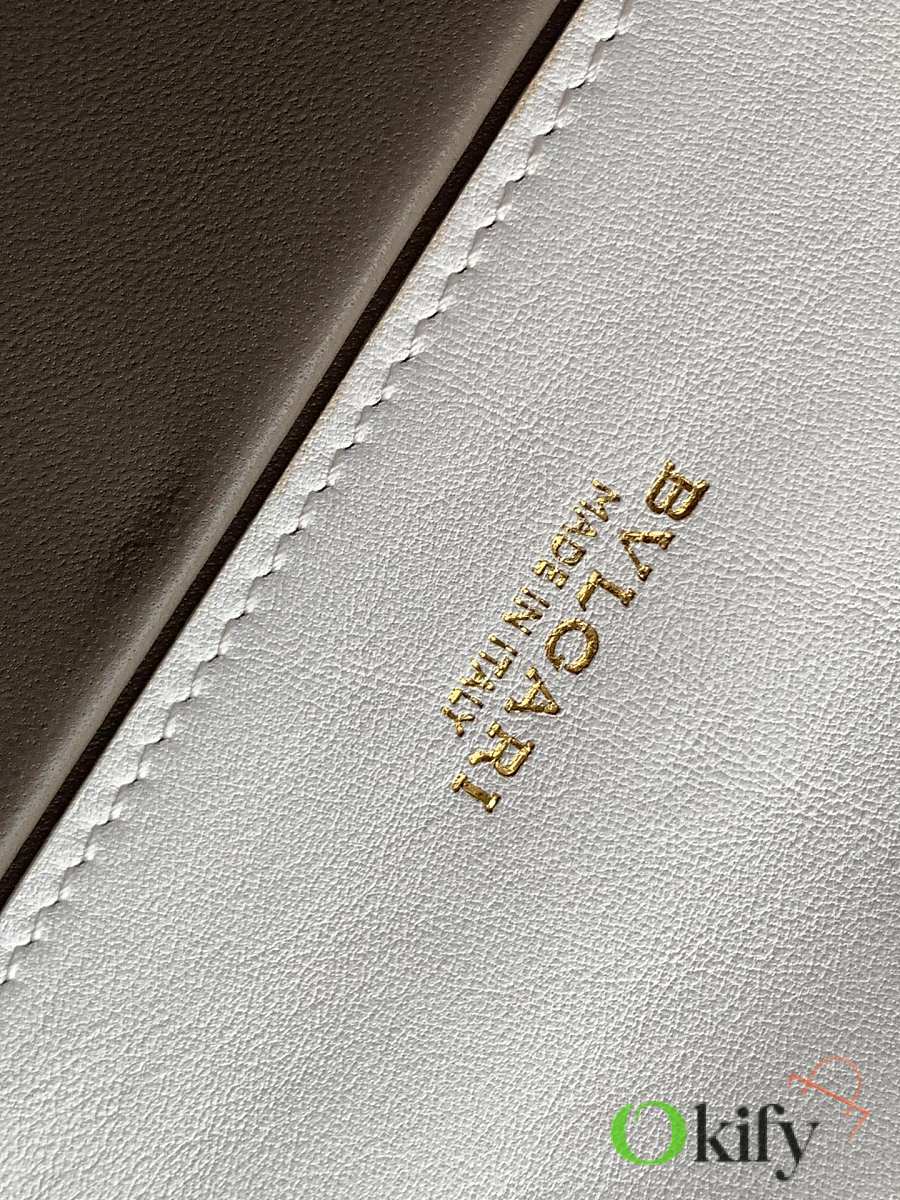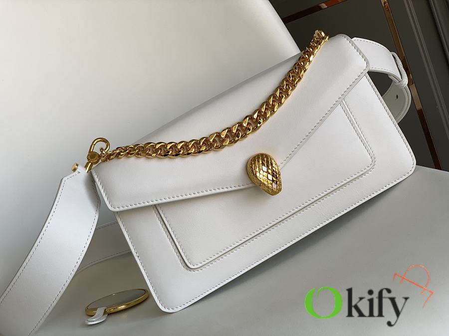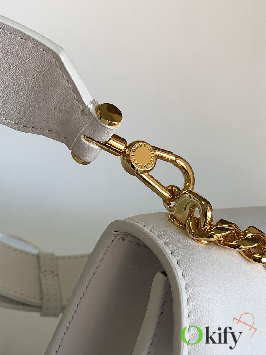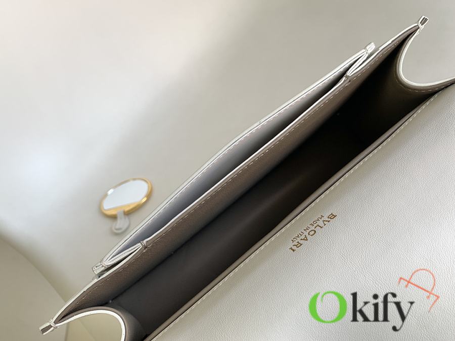 Comes with a leather shoulder strap, a customizable makeup mirror, and a BULGARI metal logo on the back.