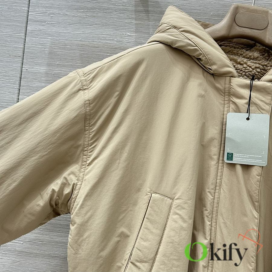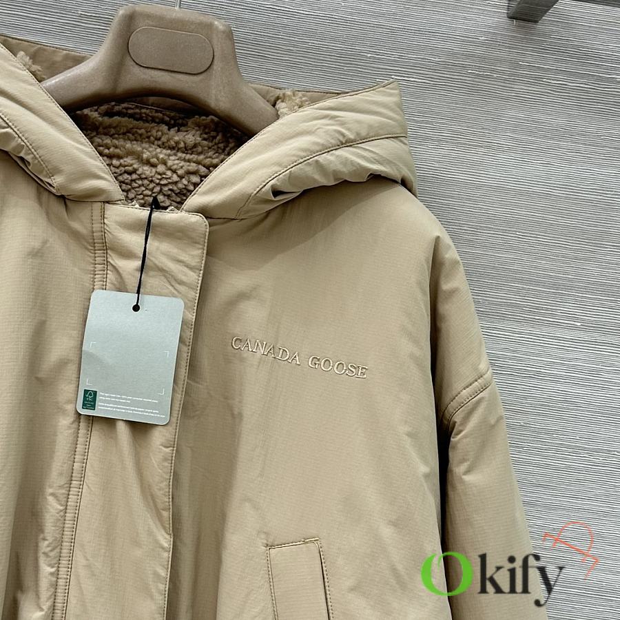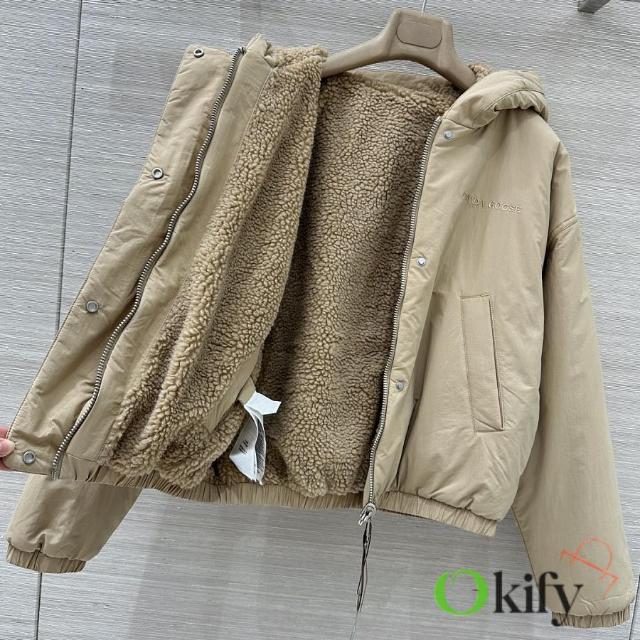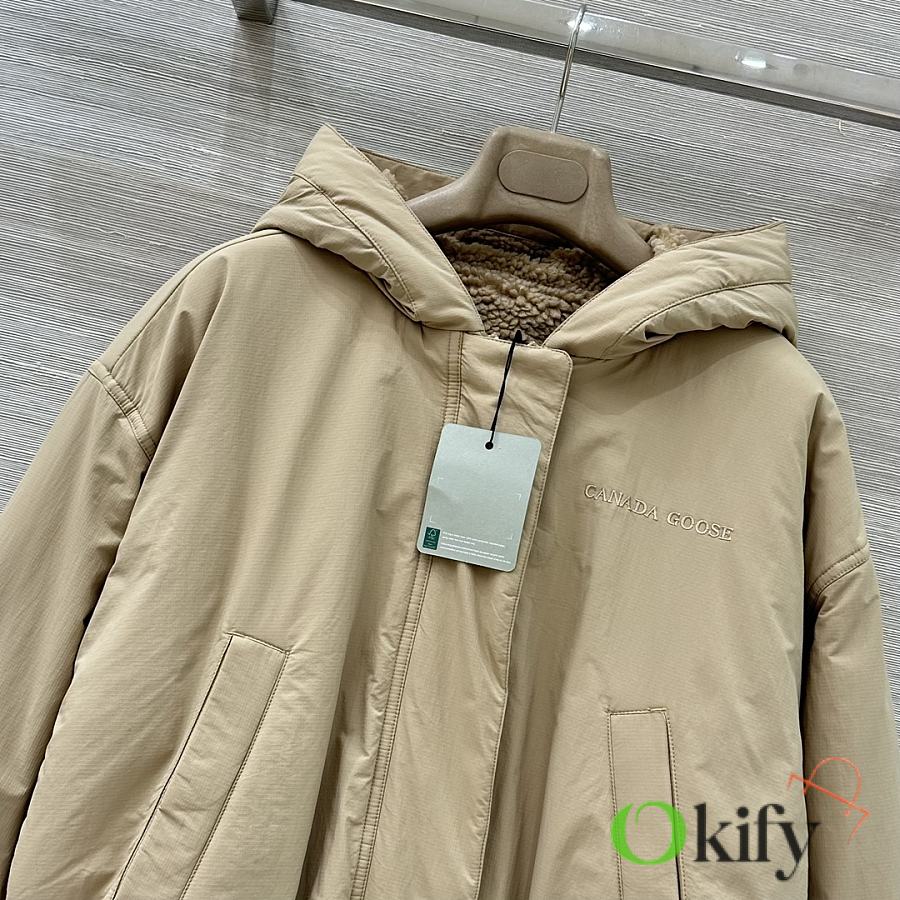 Okify Canada Goose Beige Reversible Teddy Bear Plush Hooded Jacket
