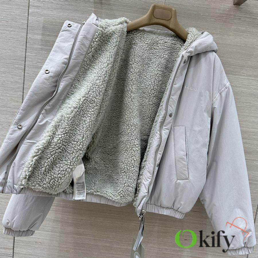 custom YB imported teddy bear plush material with obvious textured plush texture, comfortable and warm, drop shoulder design with adjustable zipper, symmetrical zippered hand pockets, logo on the cuffs showcasing the brand's style, developed fabric and accessories, hooded zipper jacket cut, elastic hem and cuffs for tighter fit to ensure autumn and winter warmth, stylish and chiC