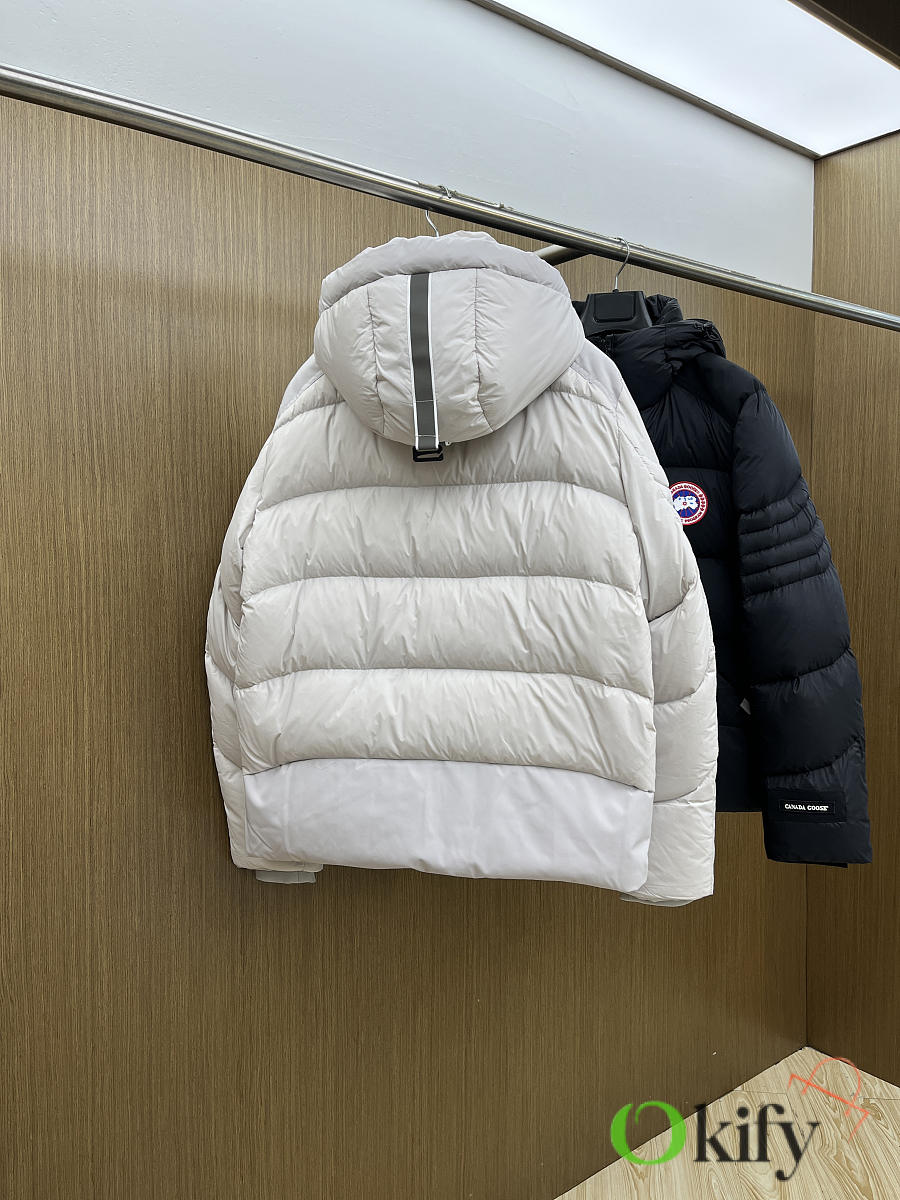 Featuring the classic logo on the chest, this popular down jacket is filled with 90# white duck down. Every detail showcases exquisite craftsmanship. The sophisticated structural tailoring is designed to present a diverse range of men's looks. Slim and tailored, it perfectly complements the current trend of layering and is a versatile style for everyday wear!